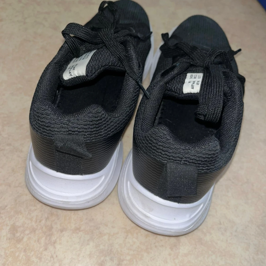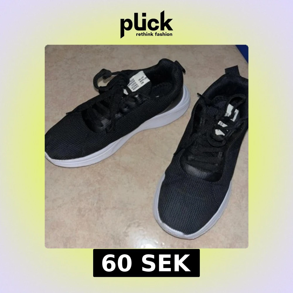 Svarta sneakers från Lager157 med vit, tjock sula och ovandel i textil. Skorna har snörning och en sportig, modern look som passar perfekt till streetwear. Lätta och bekväma. Använda en gång.