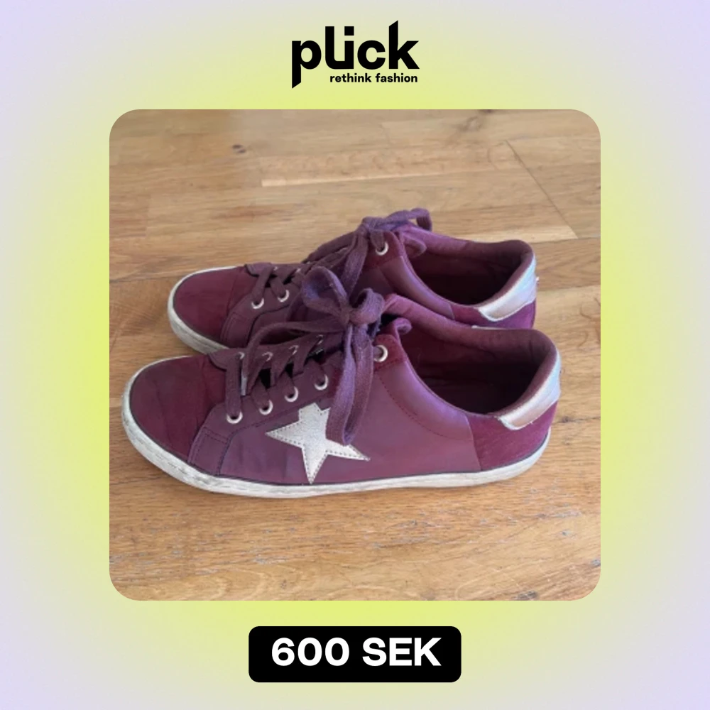 vinröda sneakers med stjärnor som detaljer på vardera sko. Storlek 40