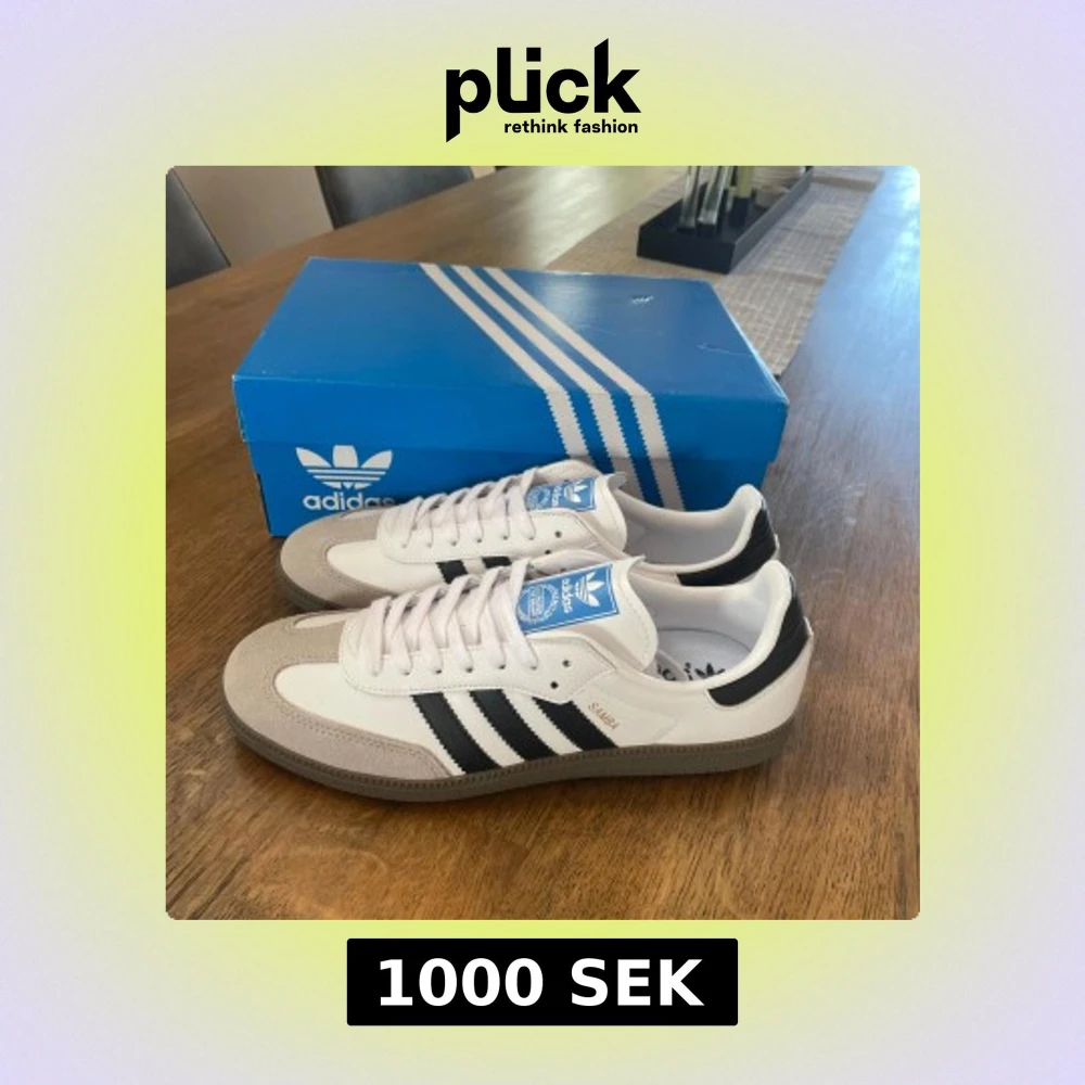 Säljer mina adidas samba eftersom att jag råkade beställa fel färg och frakten för att skicka tillbaka skon var för dyr, så tänkte att jag lägger ut de på Plick istället. Den är helt nya och oanvända, nypris 1349. Storlek 43. Hör av er om ni har några frågor!