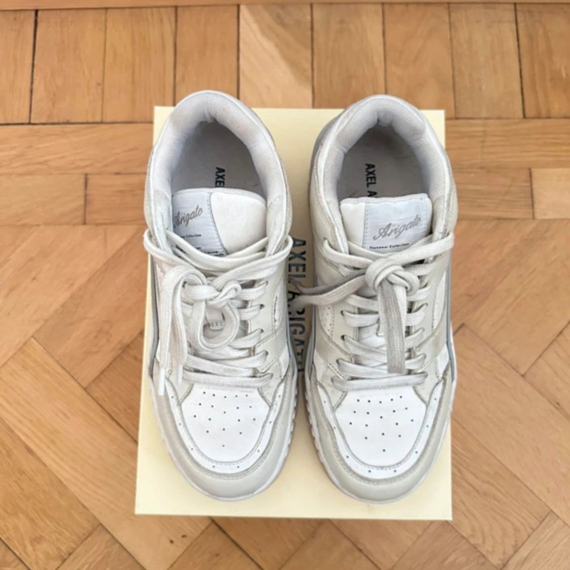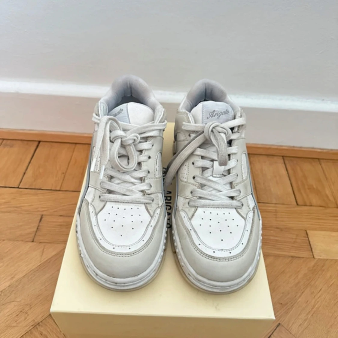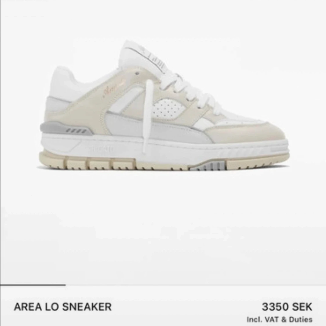 Snygga Area Lo sneakers från Axel Arigato i beige och vitt skinn med grå detaljer. Super fräscha, bara använts ett fåtal gånger eftersom de tyvärr är för små för mig. Nypris 3,350