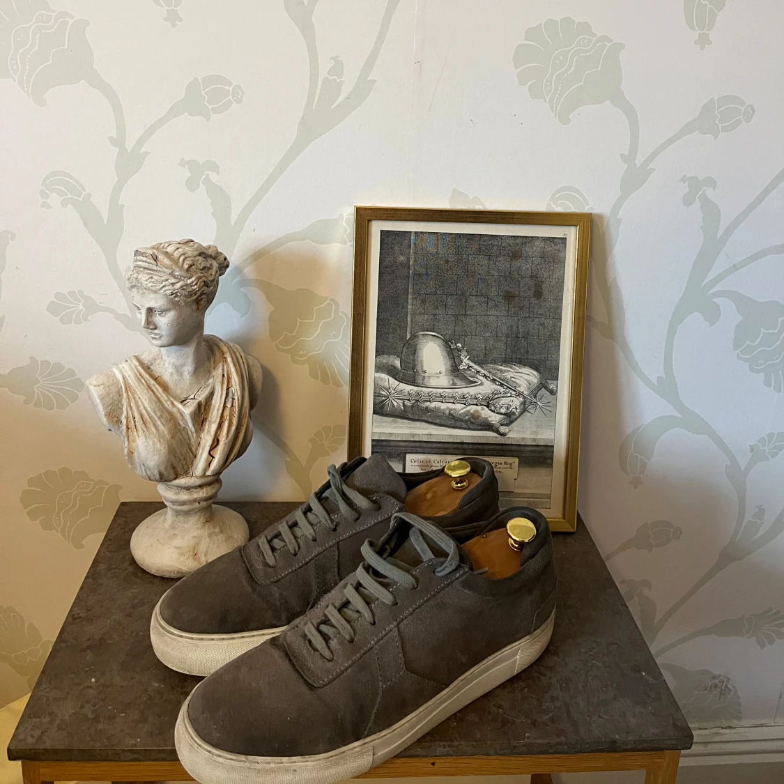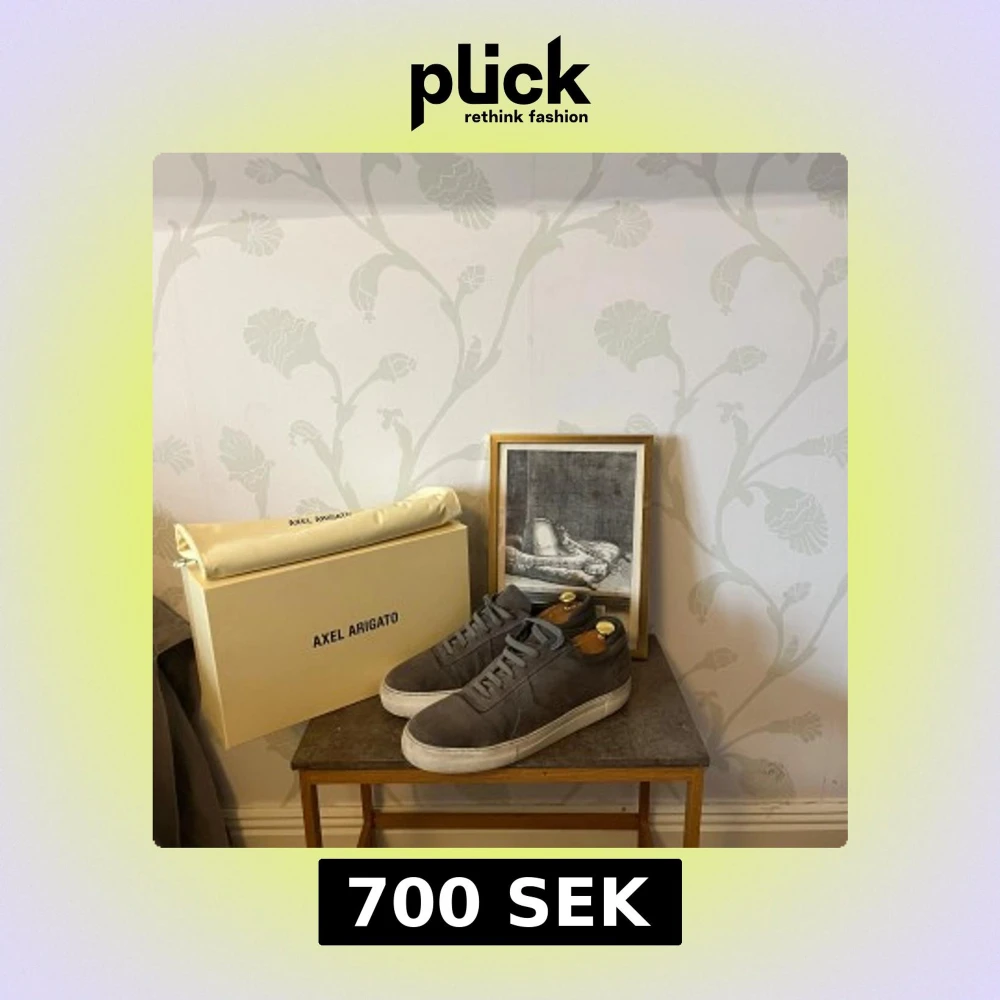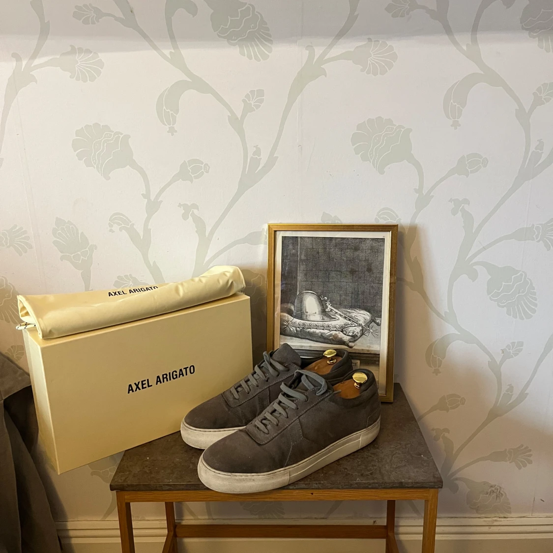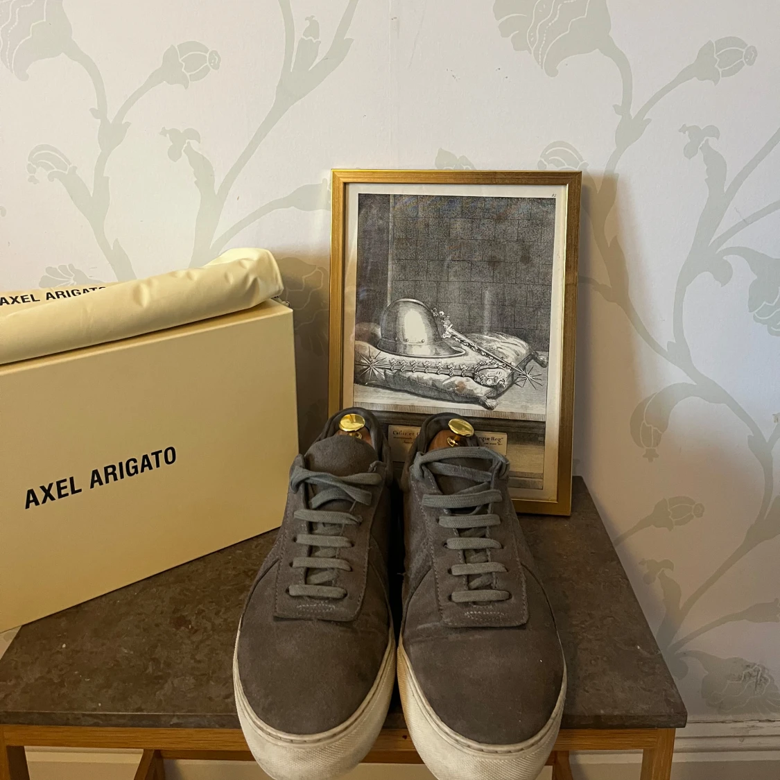 Snygga grå sneakers från Axel Arigato med stilren design och snörning. Box och dustbag kommer med.🤗