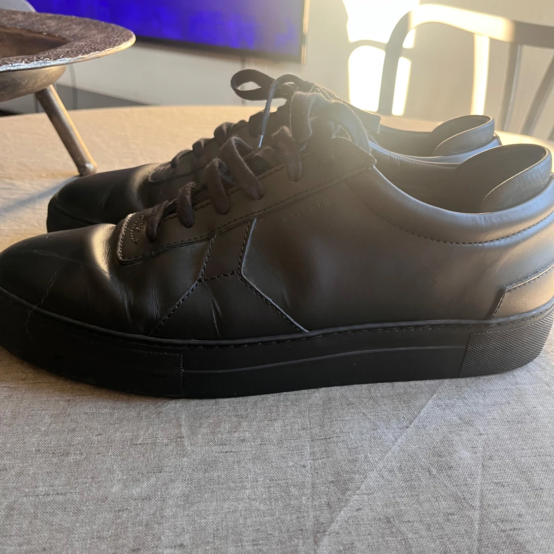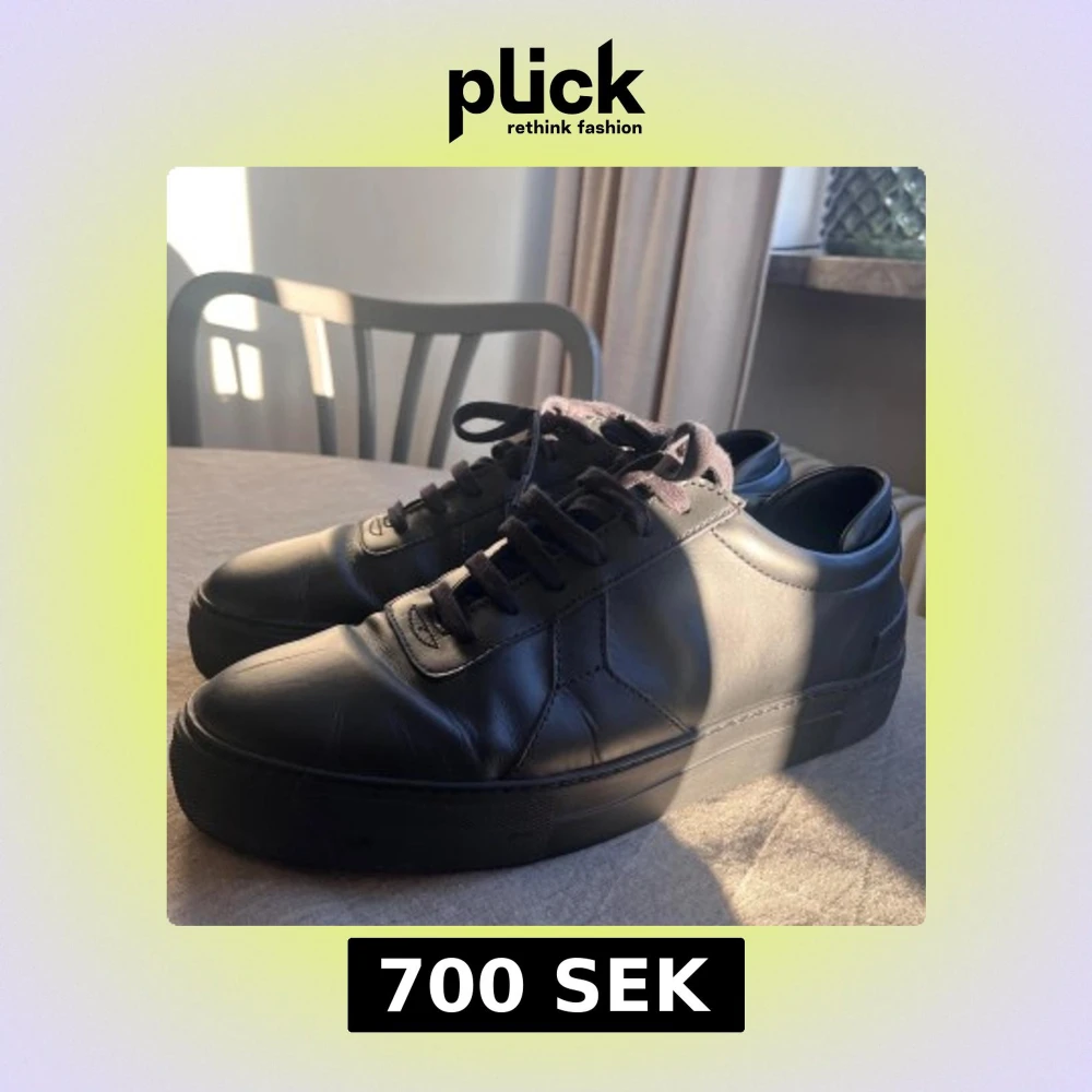 Snygga svarta sneakers i skinn med rund tå och snörning. Perfekta för en stilren look och passar till många olika outfits. Storlek:44 Pris: 700kr skick:7/10