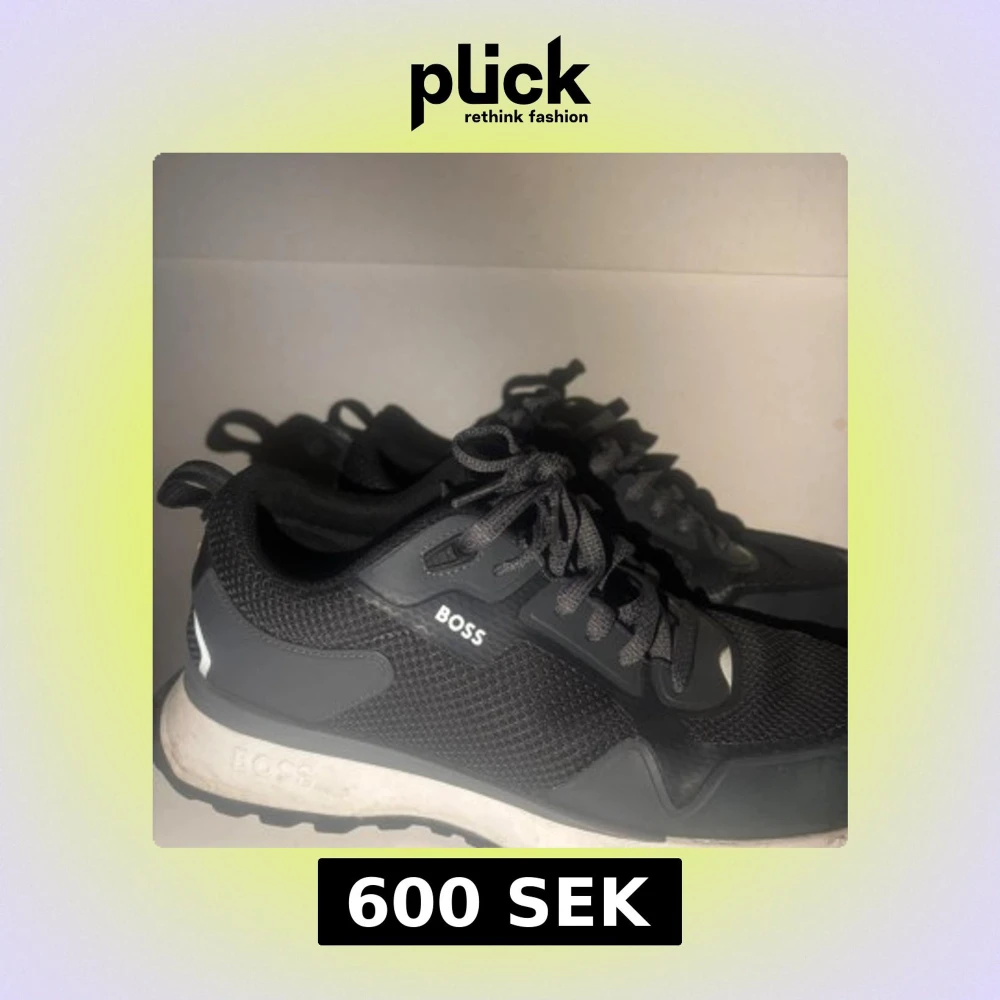 Snygga svarta sneakers från BOSS med grå detaljer och vit sula. Skorna har meshpaneler för extra ventilation och snörning framtill. Perfekt för dig som gillar stilrena och sportiga skor med modern design. Storlek 44