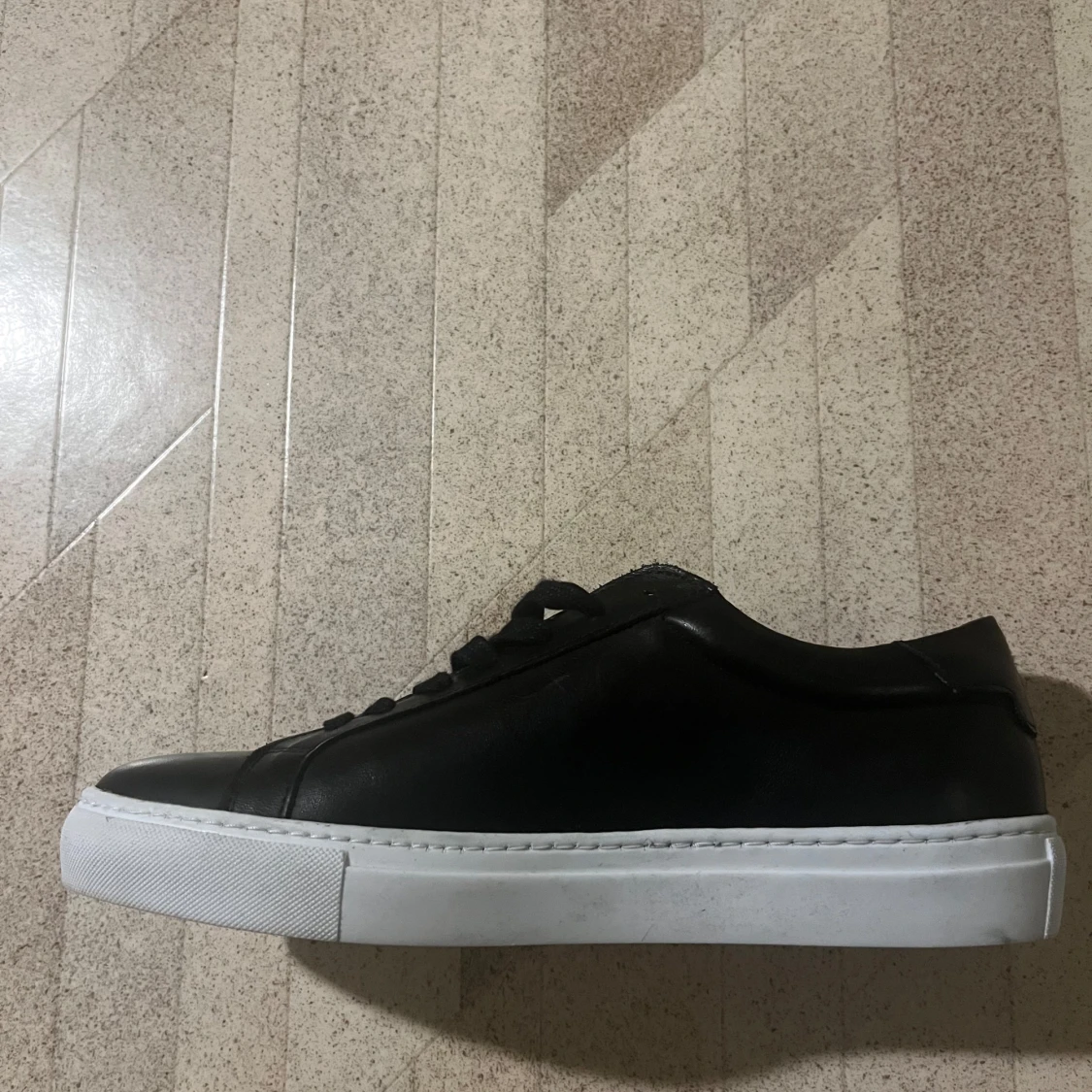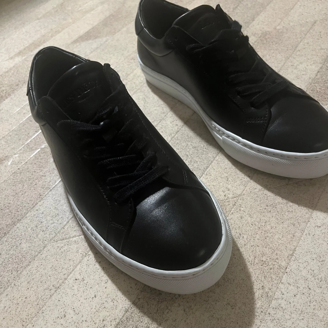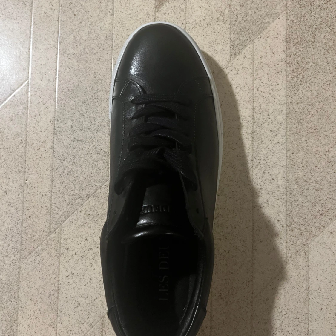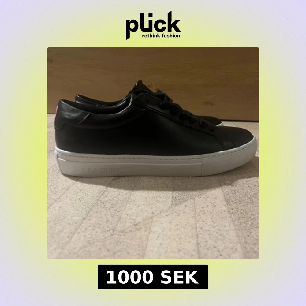 Snygga svarta sneakers från Les Deux med vit sula och klassisk snörning. Perfekta för en stilren look.