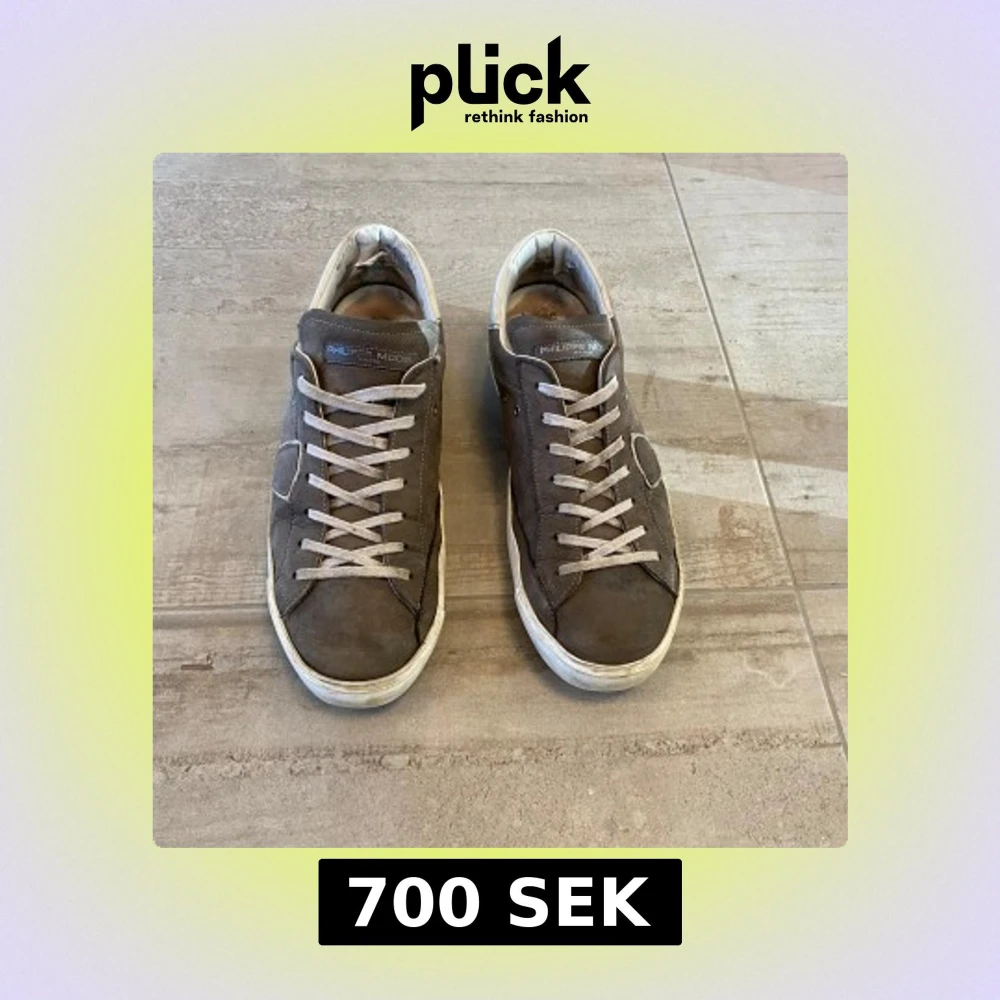 Snygga grå sneakers från Philippe Model med vita snören och en stilren design. Skorna har en rund tå och är tillverkade i skinn med en kontrasterande vit sula. Perfekta för en avslappnad stil.-Skriv om ni har några frågor om skorna!