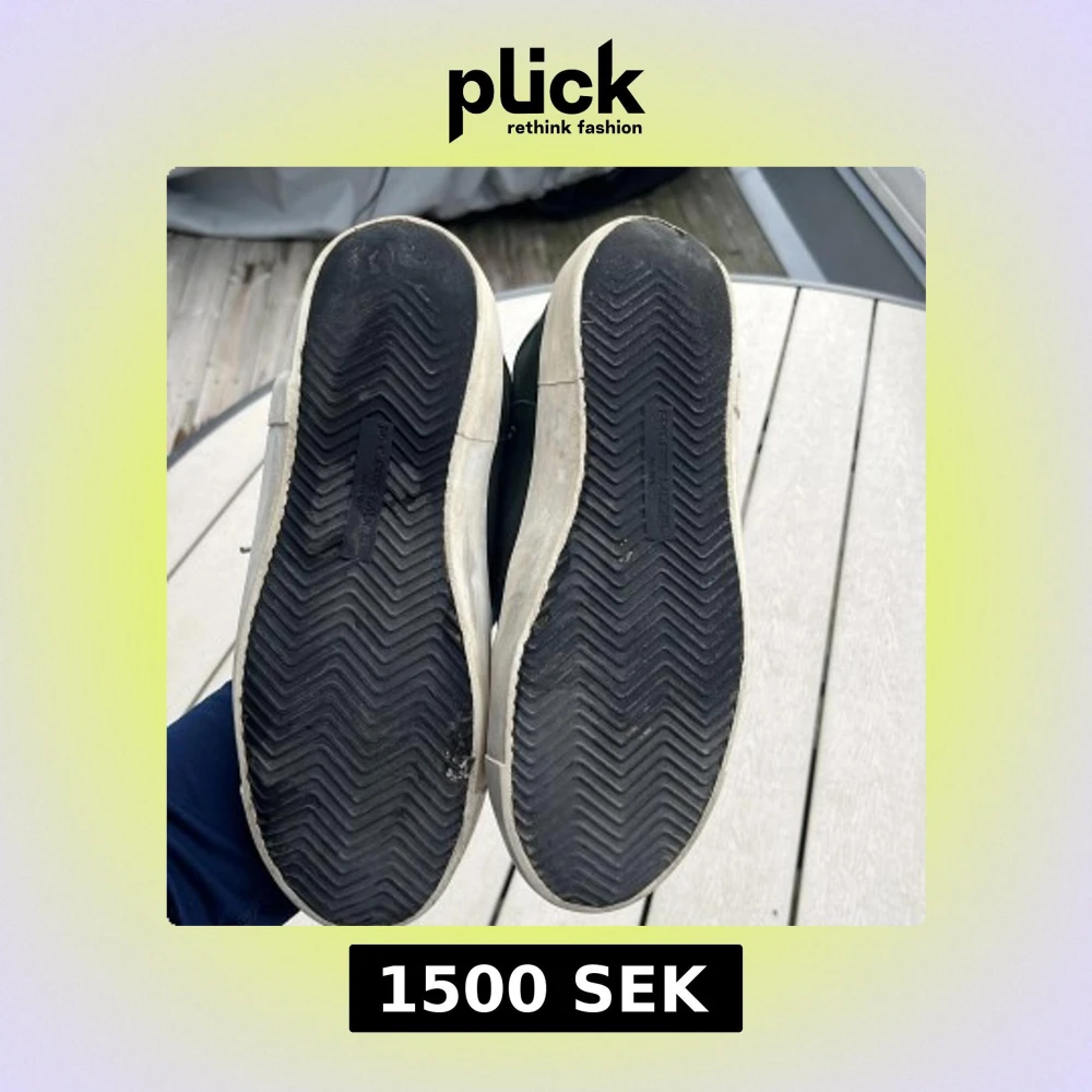 Snygga mörk gröna sneakers från Philippe Model med vita detaljer och snörning. Skorna har en klassisk design med rund tå och en bekväm passform. Perfekta för en stilren look. Lite slitna men väldigt bra skick för priset. Box följs med. Kan gå ner i pris vid snabb affär
