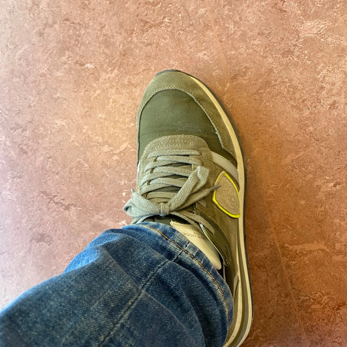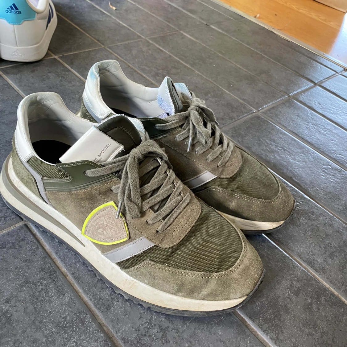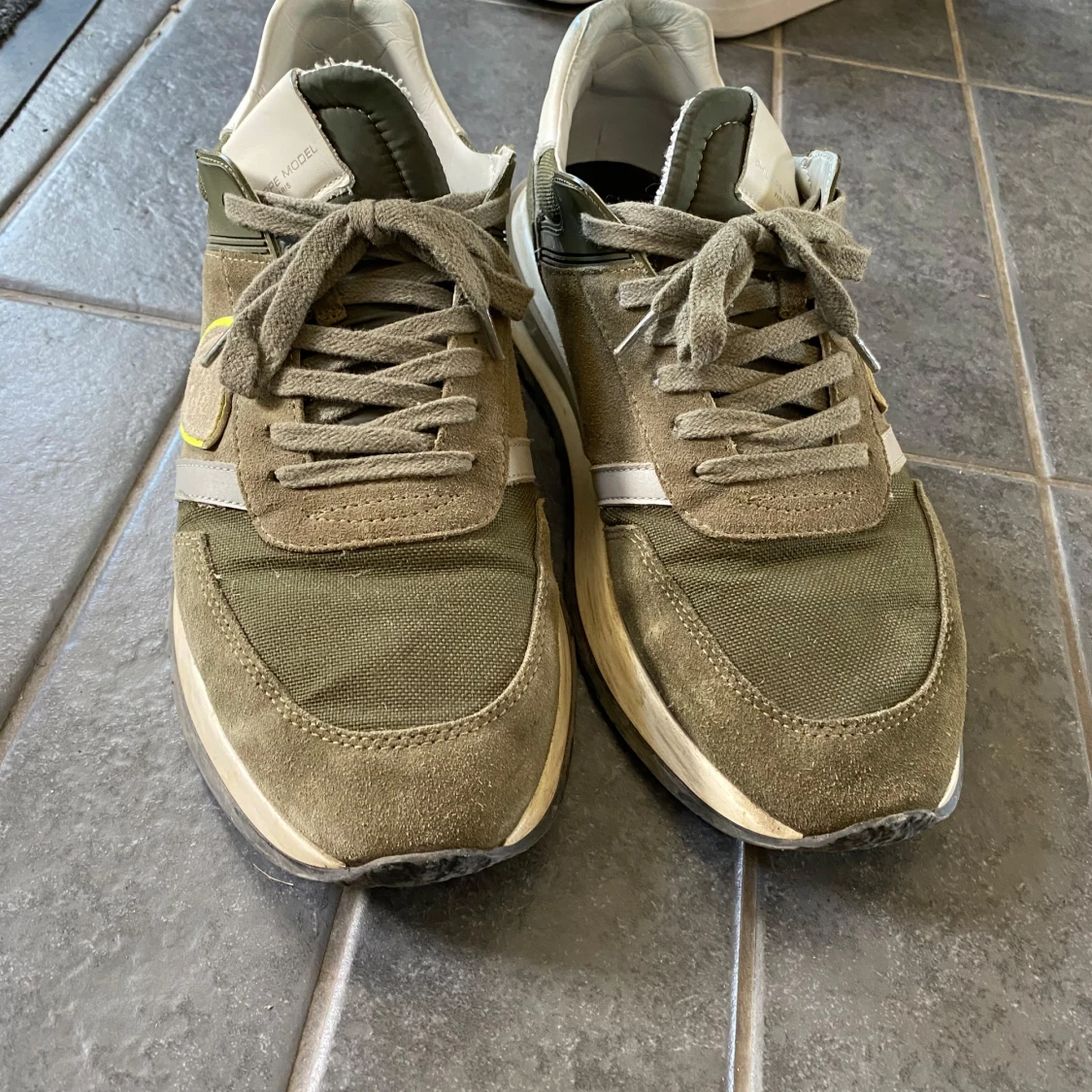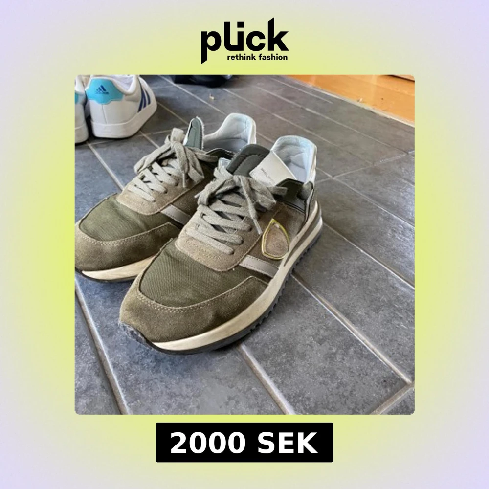 Snygga sneakers från Philippe Model med färgen kaki, med detaljer i mocka och textil. Skorna har grön snörning, vit sula och en gul detalj på sidan. Perfekta för en trendig och avslappnad stil. Nypris på dessa 3600 men säljer dom nu för 2500 eftersom jag behöver pengarna nu, pris kan diskuteras också om ni är sugna! Du får även med lådan till skorna