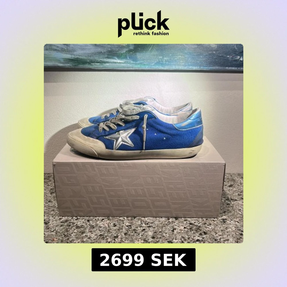 Säljer nu mina unika golden goose i storlek 41 men passar 42, de har lite förslitningar på sulan i hälen, men övrigt väldigt fräscha. På sista bilden ser du även att man kan sätta på märken om man vill, de skickas såklart med resten av innehållet i lådan😁