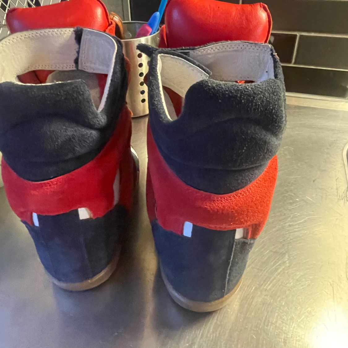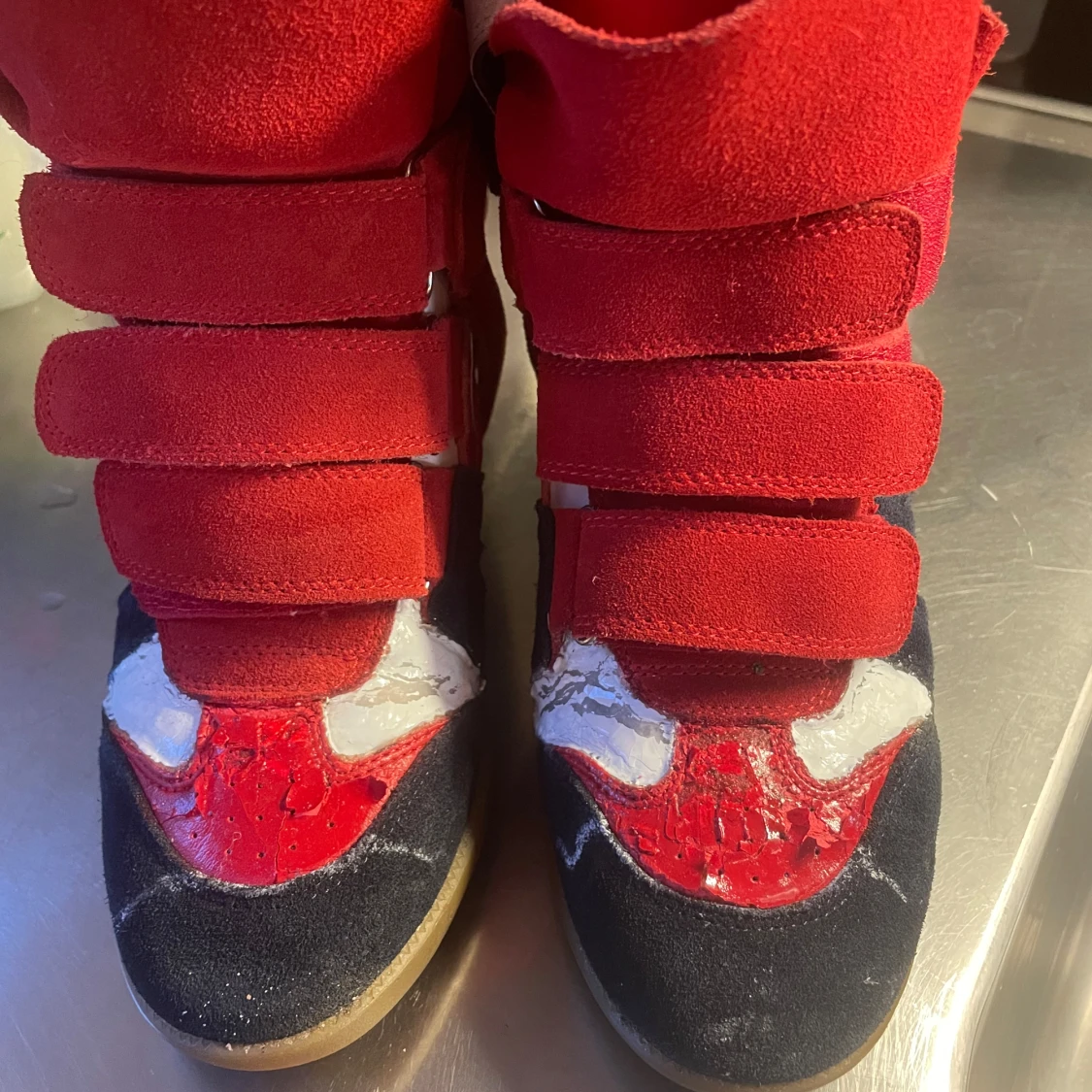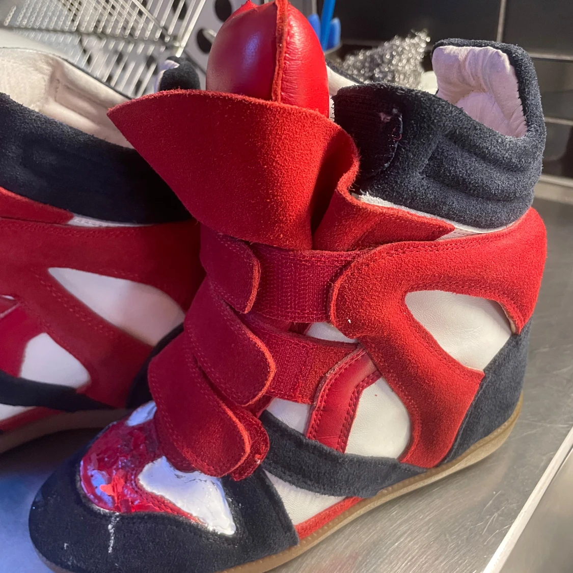 Äkta bekett sneakers från Isabell marant!! Lädret på framsidan har gått av. Men resten är i bra skick. De är unika och är perfekta för att sticka ut i mängden!! Storlek 37.