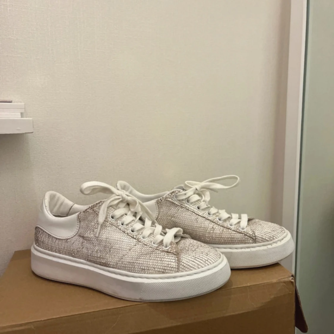 As coola sneakers med ”ormskinn” från märket maritan verona. Köpta i Italien för ca 2700kr ! Sparsamt använda, står strl 35 men skulle säga 36