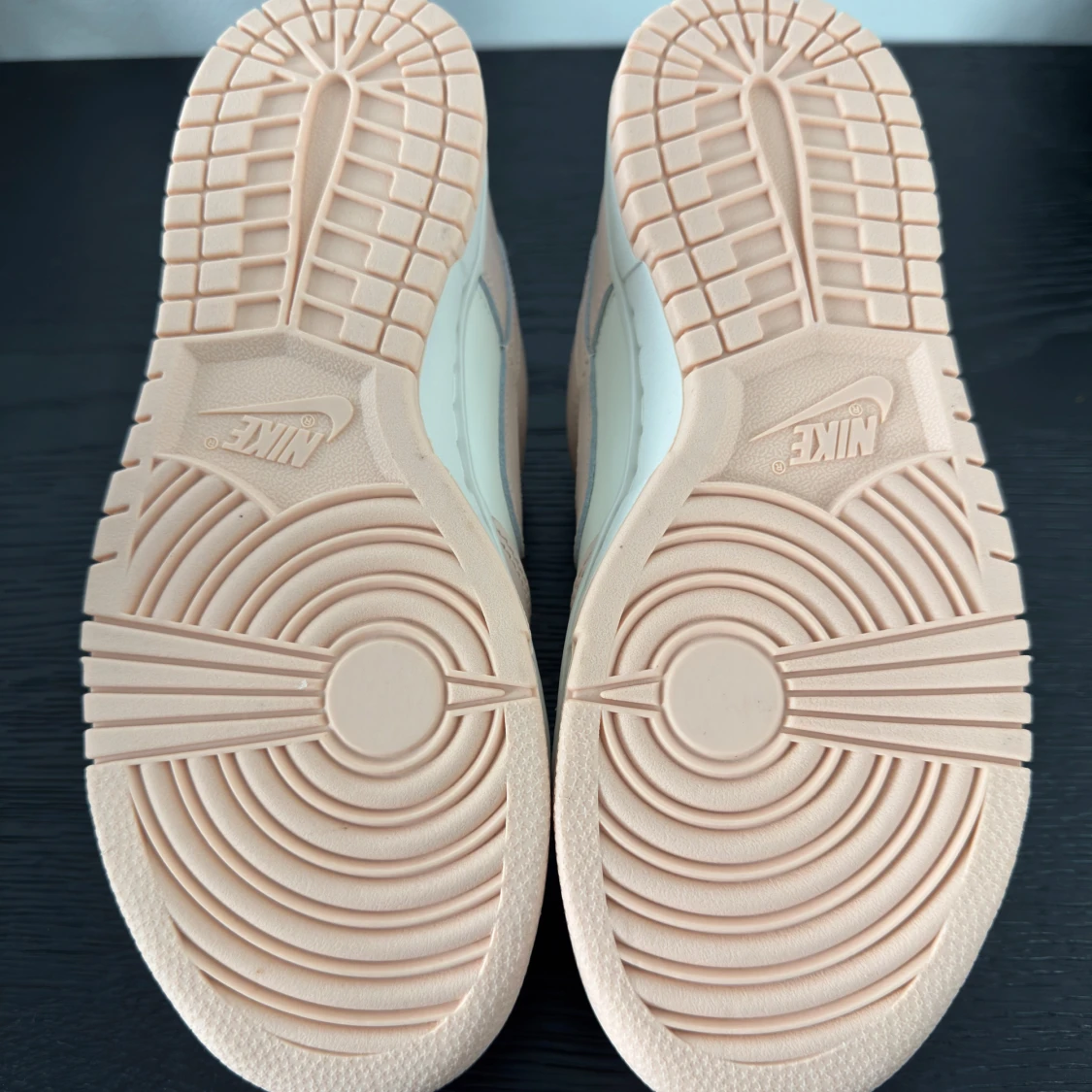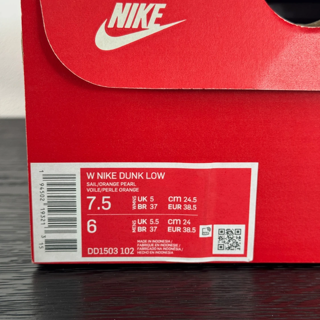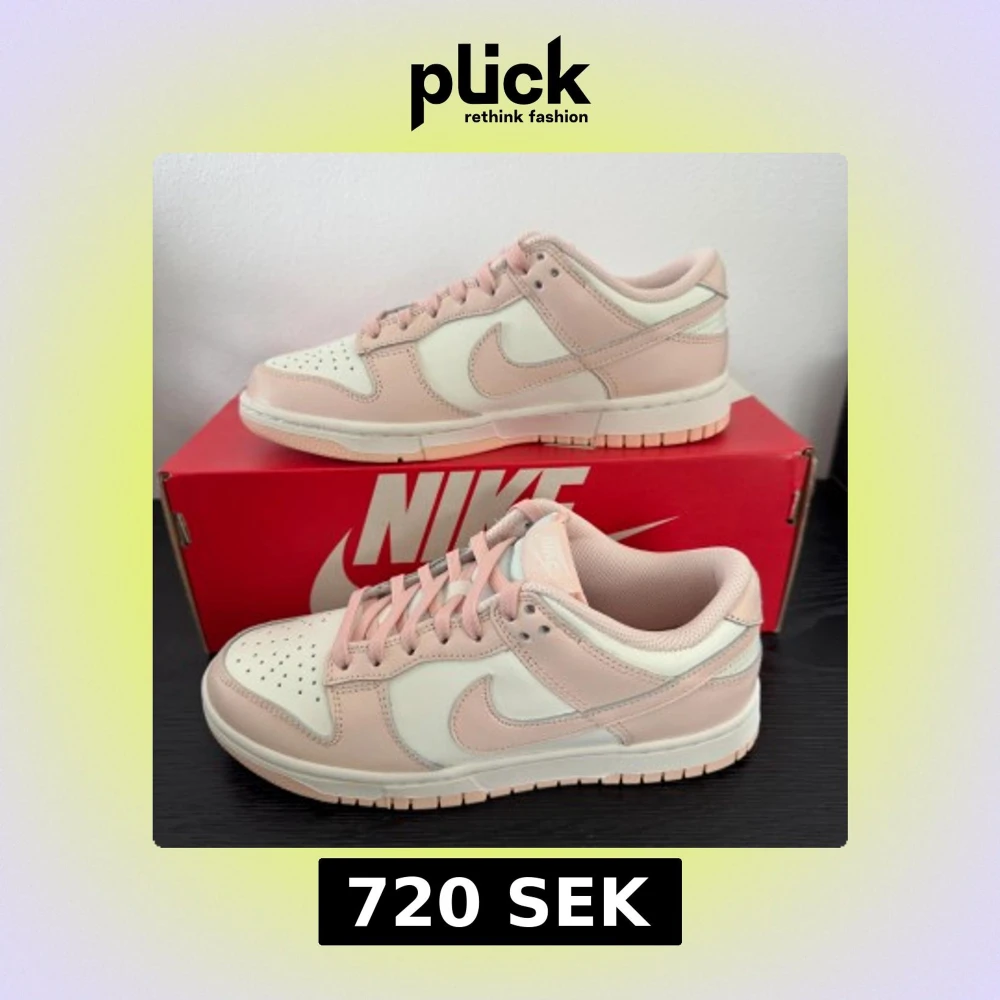 Nike Dunk Low Orange Pearl i storlek 38.5, med en fräsch kombination av ljusrosa och vit. Skorna är helt nya/oanvända och kvitto finns. Snabb och smidig affär utlovas.