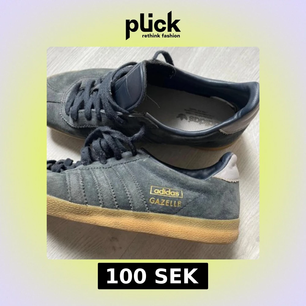 Adidas Gazelle sneakers. Unika då de är helfärgade i marinblått med gulddetaljer. De har sina skavanker men fortfarande riktigt coola🖤