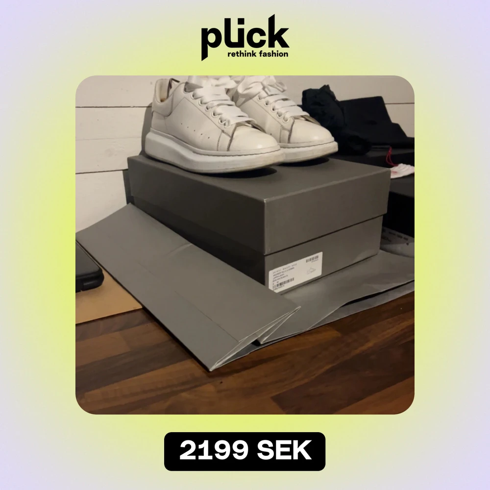 Säljer ett par stilrena vita sneakers från Alexander McQueen i mycket bra skick. Har alla tillbehör som extra snören, kvitto, skopåse och kassen från Alexander McQueen, om mer bilder önskas är det bara att skriva😁