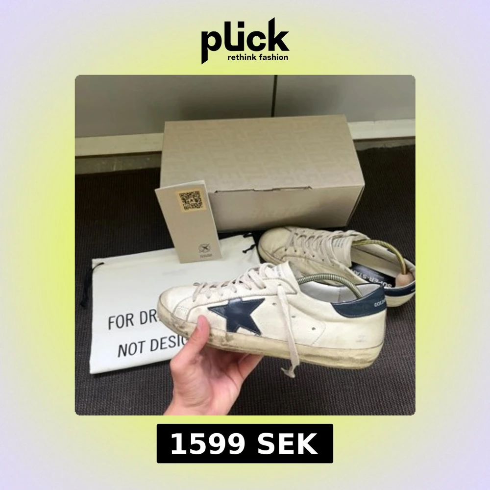 Snygga golden goose skor i färgen navy/white. Köptes nya på miinto för 4800kr. Säljer de nu för 1599kr. Allt og+ kvitto medkommer vid köp. Finns slitningar på hälen. Storlek 40 men passar som 41.