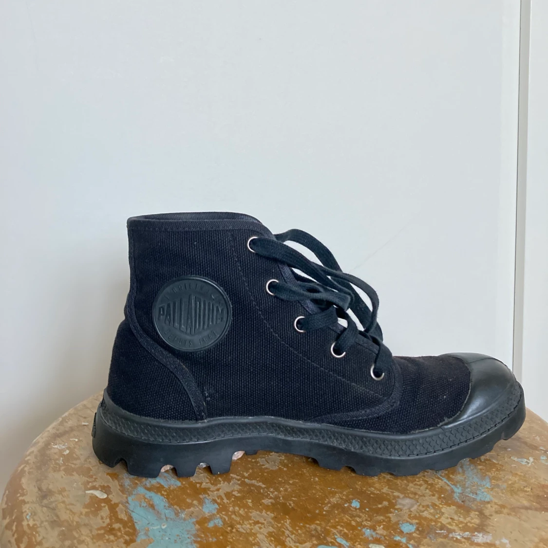 Svarta höga sneakers från Palladium i storlek 38, knappt använda därav väldigt fint skick! OBS! köparen står för frakten 🫶🏼