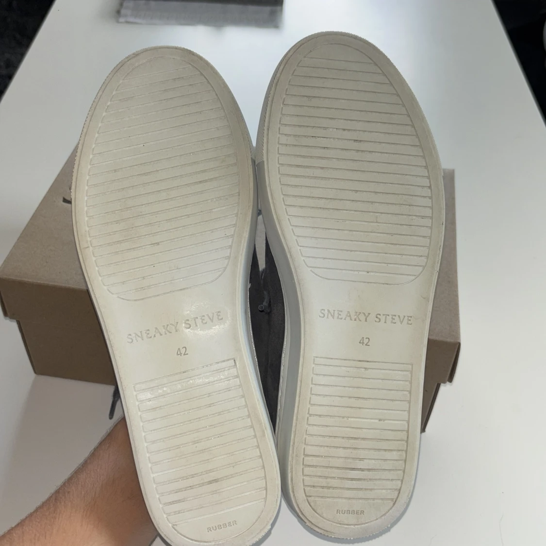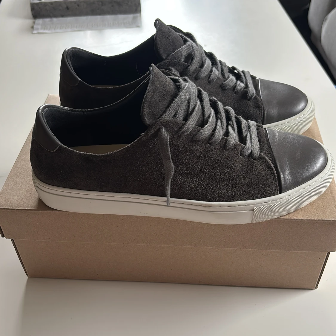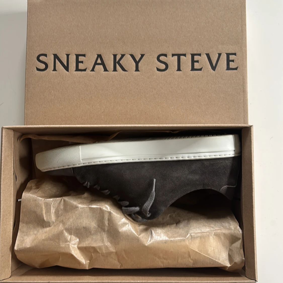 Stilrena sneakers från Sneaky Steve i mörkgrå mocka. Bara använt ett fåtal gånger, mycket bra kvalitet och riktigt snygga. Tyvärr var dem försmå för mig så det är därför jag säljer dem!