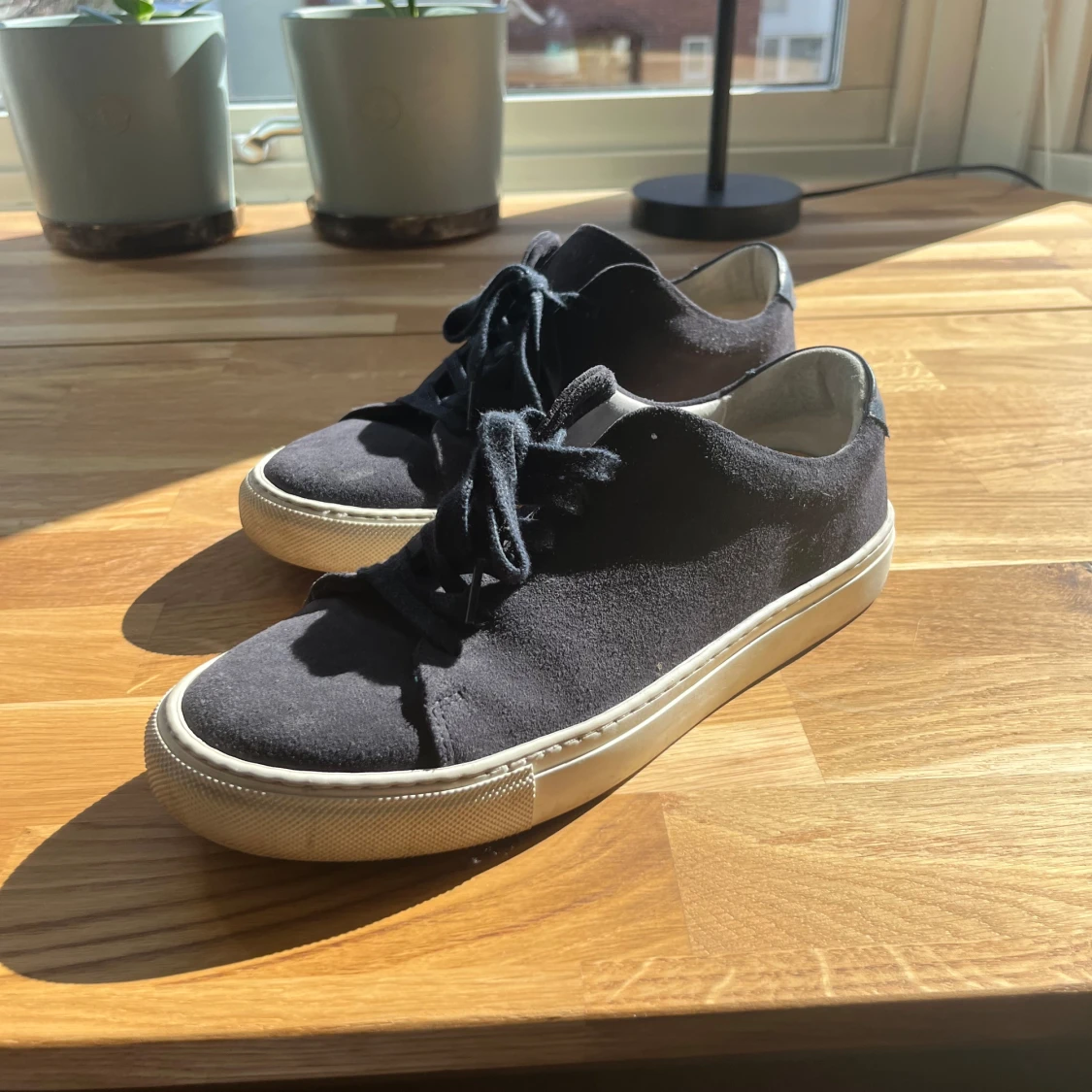 Blå mocka skor, från märket Sneaky Steve. Storleken på skorna är 40 och dom är i använt bra skick. Pris 300 kan diskuteras.