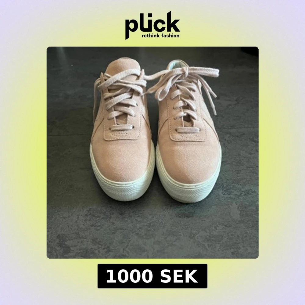Snygga rosa sneakers från Axel Arigato i mocka med snörning. Perfekta för en stilren look. Skorna har en vit sula som ger en fräsch kontrast till den mjuka mockan. Använda två gånger så gott som nya. Vid fler frågor, hör gärna av er!