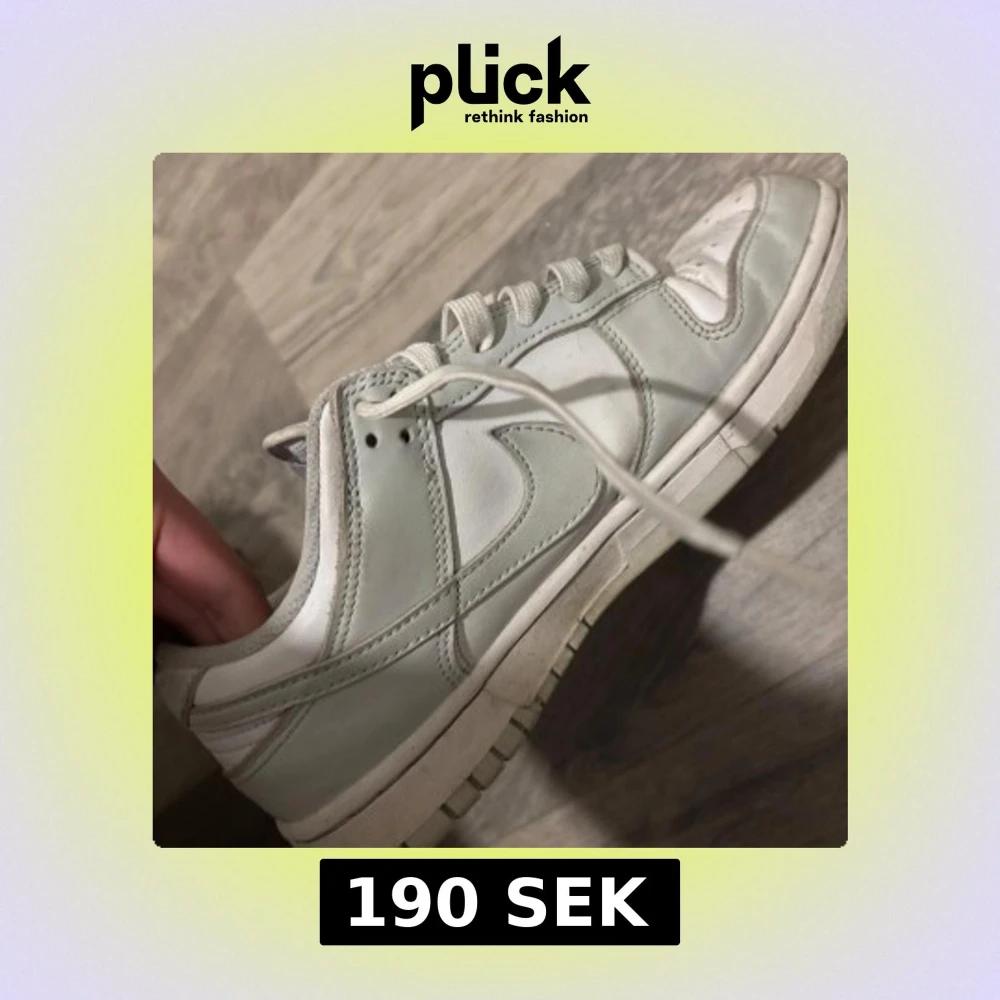 Nike Dunk Low sneakers i vitt och ljusgrått skinn med klassisk swoosh på sidan. Skorna har snörning och platt sula, perfekt för en clean och stilren look. Låg modell som passar till det mesta och ger en sportig vibe.