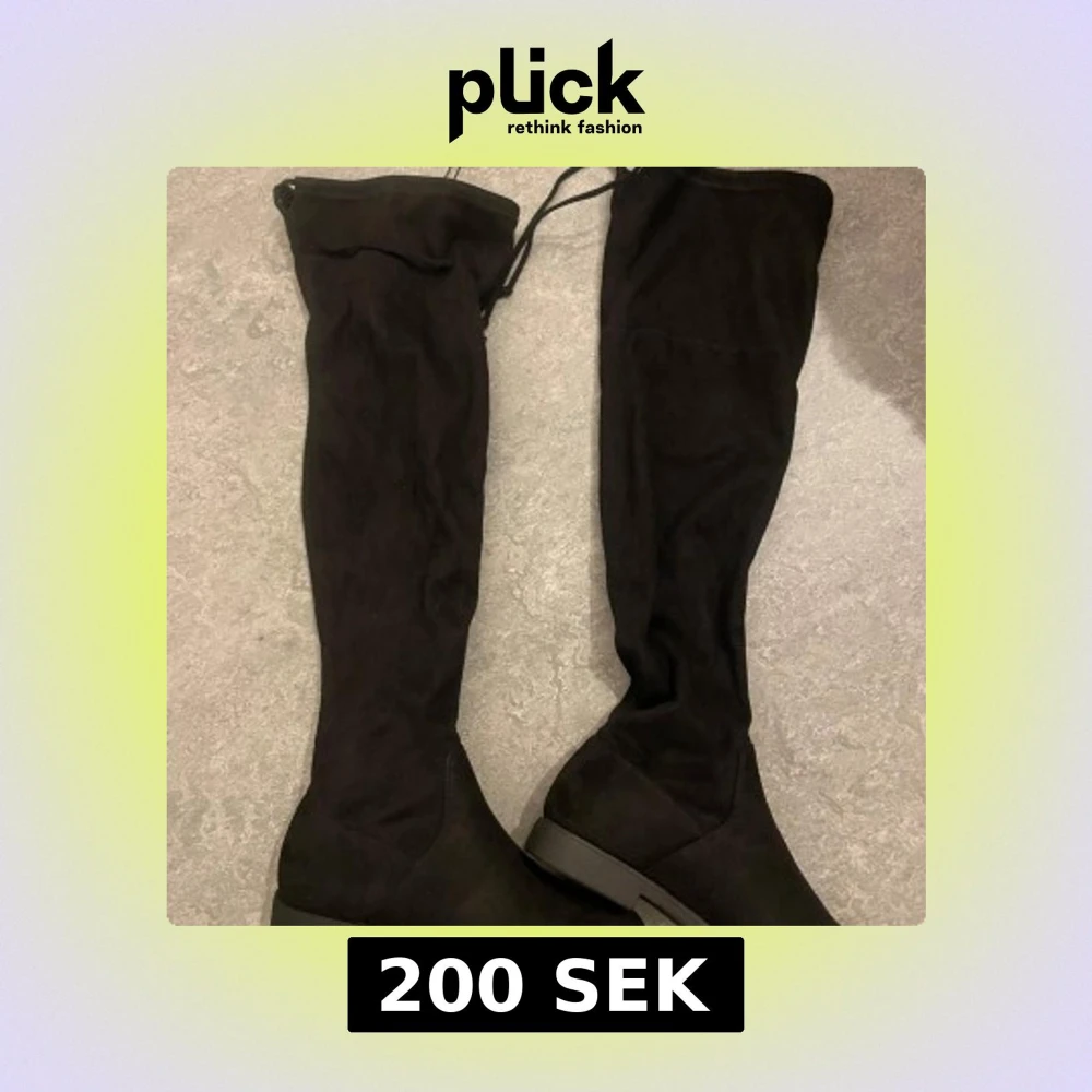 Snygga svarta overknee stövlar i mocka med en stilren design. Perfekta för att ge en elegant touch till din outfit. De har en diskret snörning baktill för justerbar passform. Köpte här på Plick men var tyvärr för stora. Dom är aldrig använda.