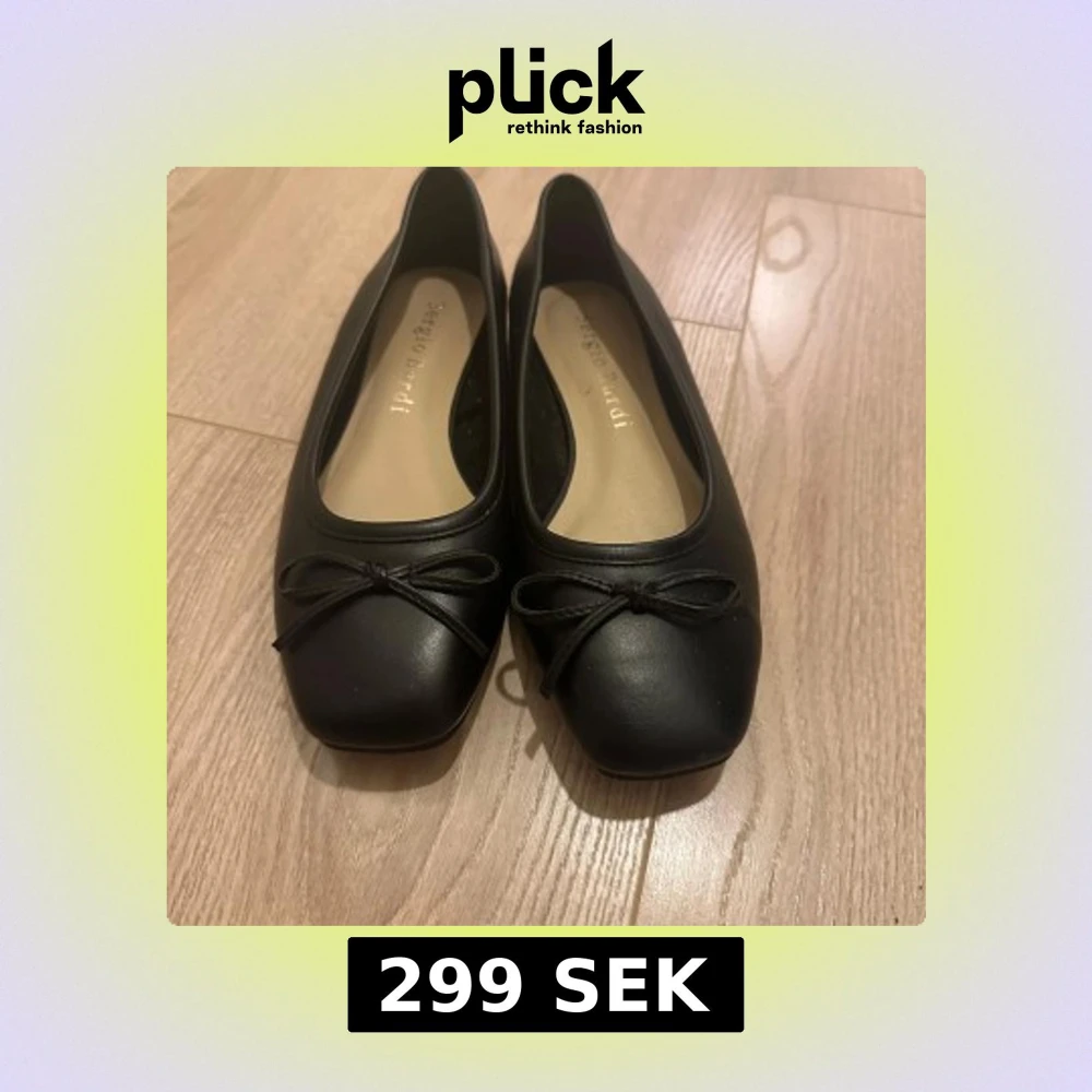 Eleganta svarta ballerinaskor i skinn med en söt rosett på tån. Perfekta för en stilren look. Endast testade. I storlek 37