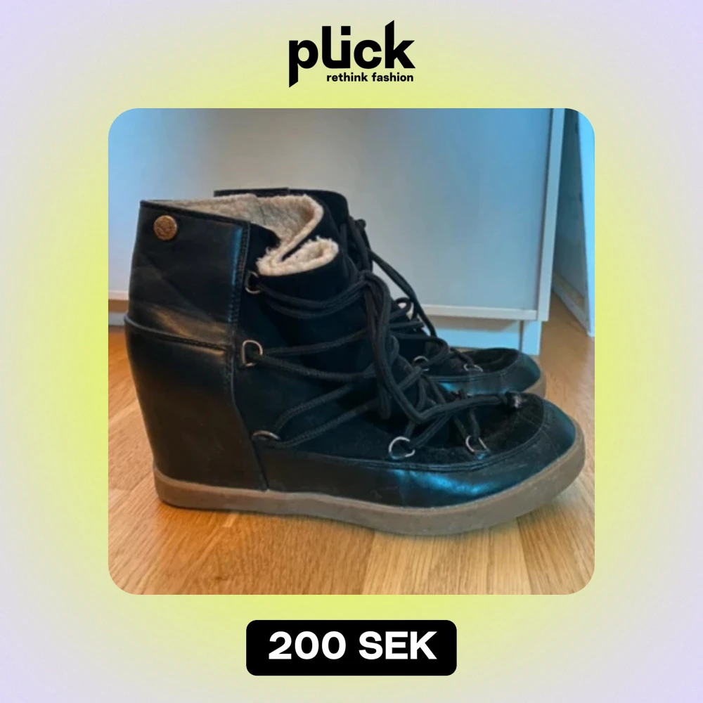 Snygga och fodrade vinterkängor med klack. Fodringen på insidan är lite nopprig som kan ses på bild men annars finns inga defekter, de har bara använts några få gånger.