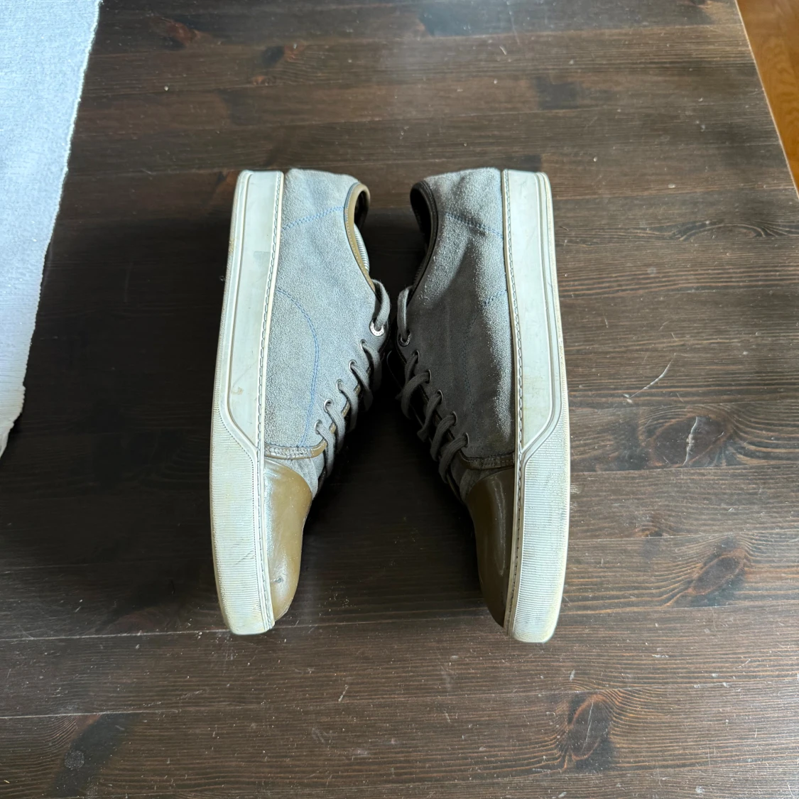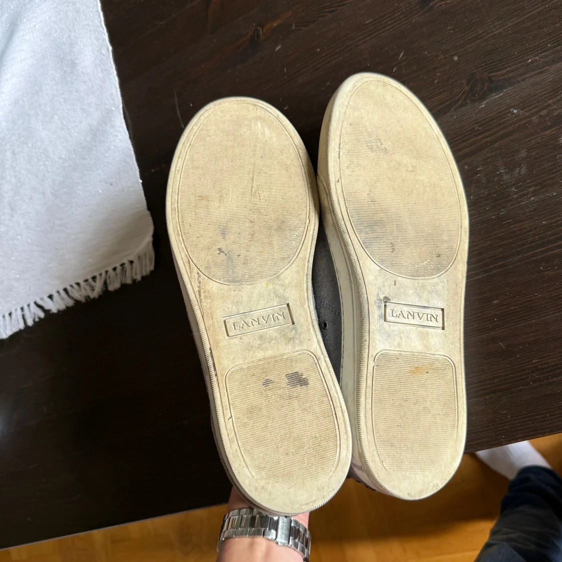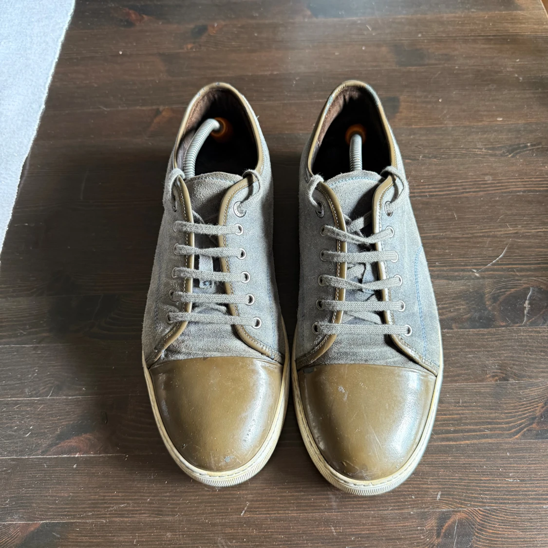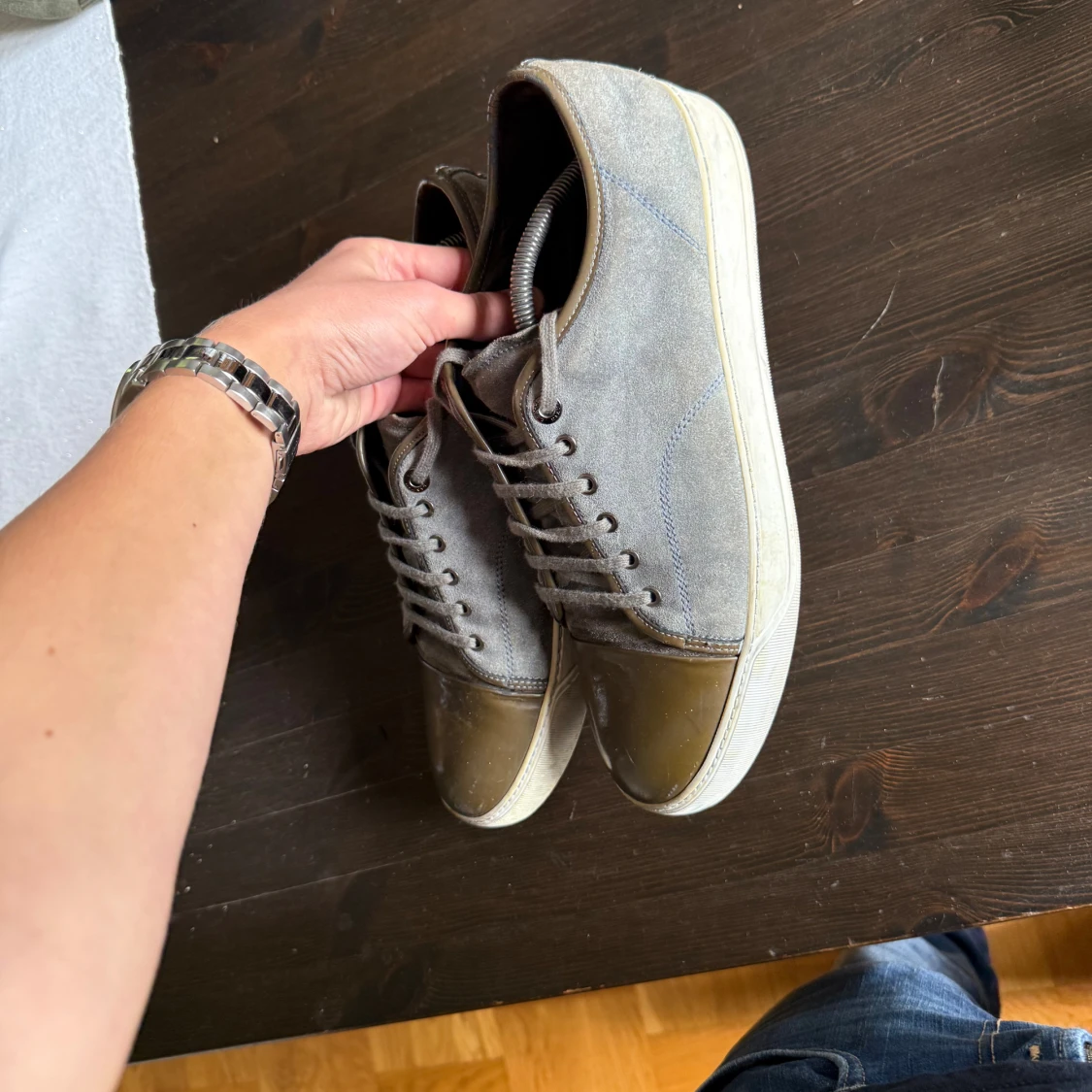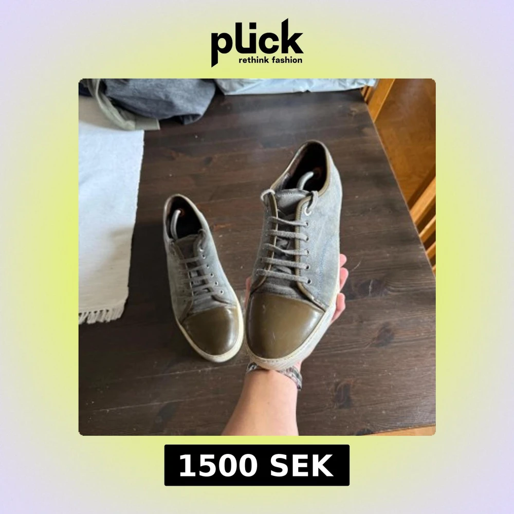 Snygga och eleganta skor från Lanvin, i grå canvas med olivgrönt tåparti i läder. Den karakteristiska designen kombinerar lyxig känsla med avslappnad stil – perfekt både till vardags och mer uppklädda tillfällen. ✅ Märke: Lanvin ✅ Storlek: (ange storlek) ✅ Färg: Grå/olivgrön ✅ Material: Canvas och läder ✅ Skick: Mycket fint begagnat skick – lätt använda men väl omhändertagna Nypris ligger runt flera tusen kronor – passa på att fynda ett par tidlösa designer-sneakers till ett riktigt bra pris.