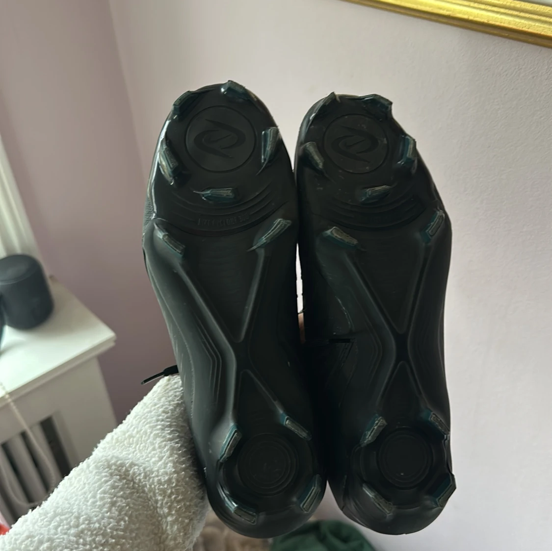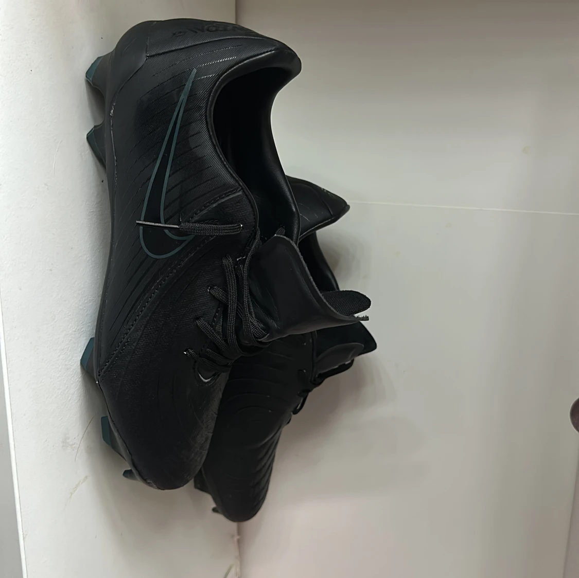 Säljer ett par svarta Nike fotbollsskor med snyggt mönstrad ovandel och diskret Nike-logga i mörkgrått. Skorna har snörning, platt sula med dobbar och rund tå. Tillverkade i syntetmaterial för bra grepp och komfort på planen. Har kvar kartongen, även kvittot kan jag tänka mig. Hade på träning 3 gånger och de passade inte mina fotbollsfötter endast därför jag säljer mina Nike fotbollsskor ‼️