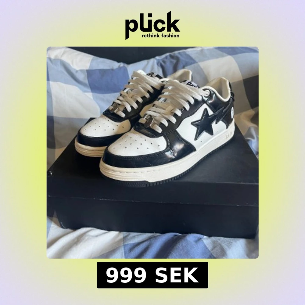 Svartvita Bape skor i mycket bra skick, endast små creases. Tyvärr finns inte originalbox utan de skickas i annan.