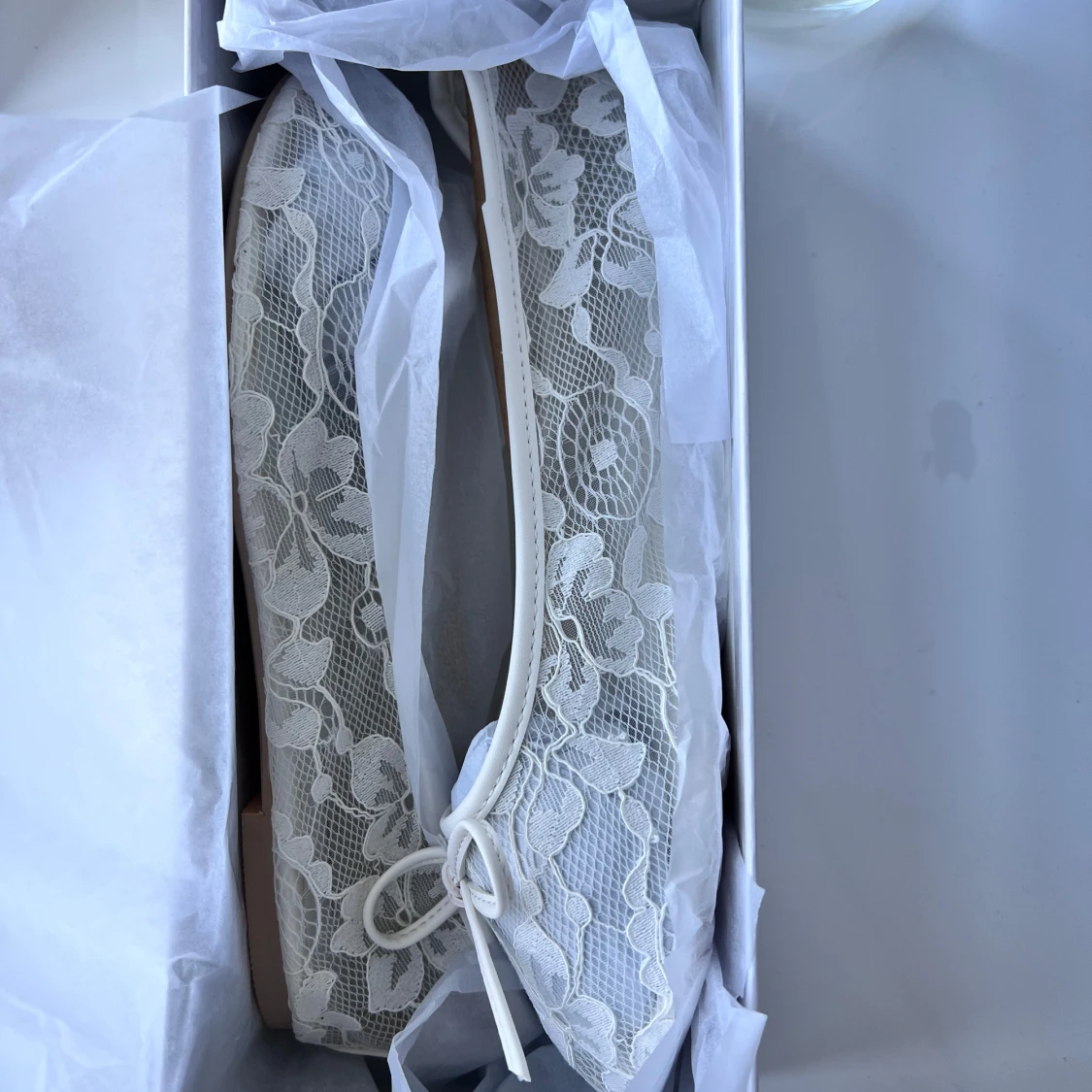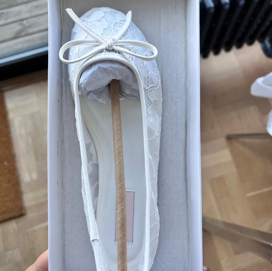 Populära supersnygga vita ballerinaskor från Nelly med spetsdetaljer och söt rosett framtill! Helt slutsålda i storlek 36 på hemsidan! Stora i storleken så passar dig som har storlek 37 i vanliga fall 🌸