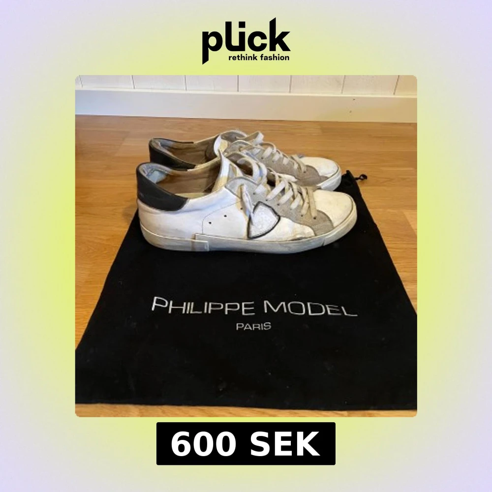 Ett par philippe models i storlek 41 men sitter som 41,5,skick enligt bilderna. Flera defekter finns, skriv privat för mer info. Dustbg ingår. Köptes nya på kicks n stuff i göteborg för ungefär ett år sedan för 2599 kr mitt pris 600 kr priset kan diskuteras vid en snabb affär hör av er vid frågor