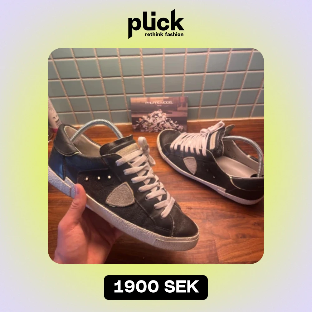 Säljer mina riktigt feta Philippe models i storlek 41 som är i bra skick. Dom är svarta och vita med riktigt snygga guld detaljer. Vita och svarta snören kommer✅ pris kan diskuteras