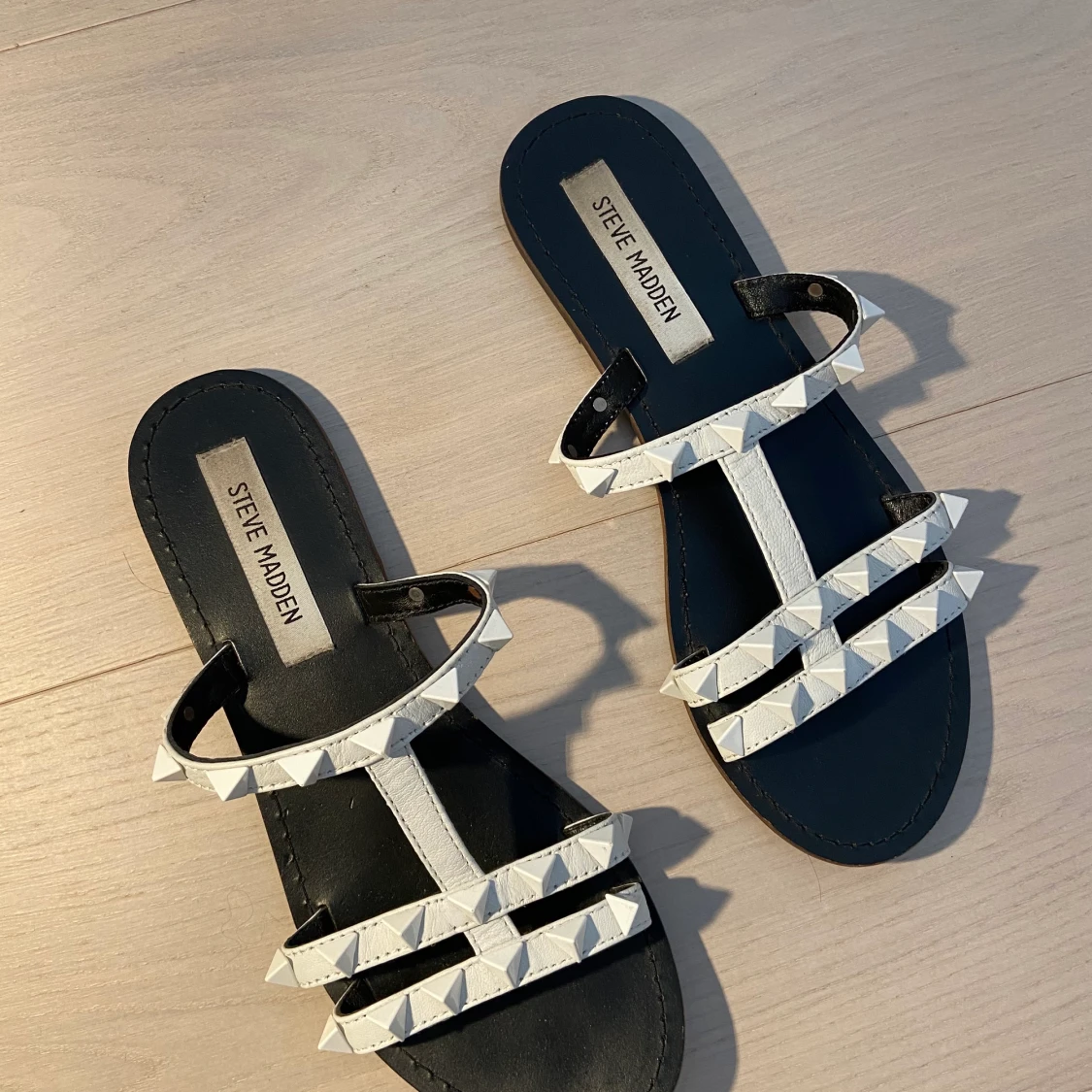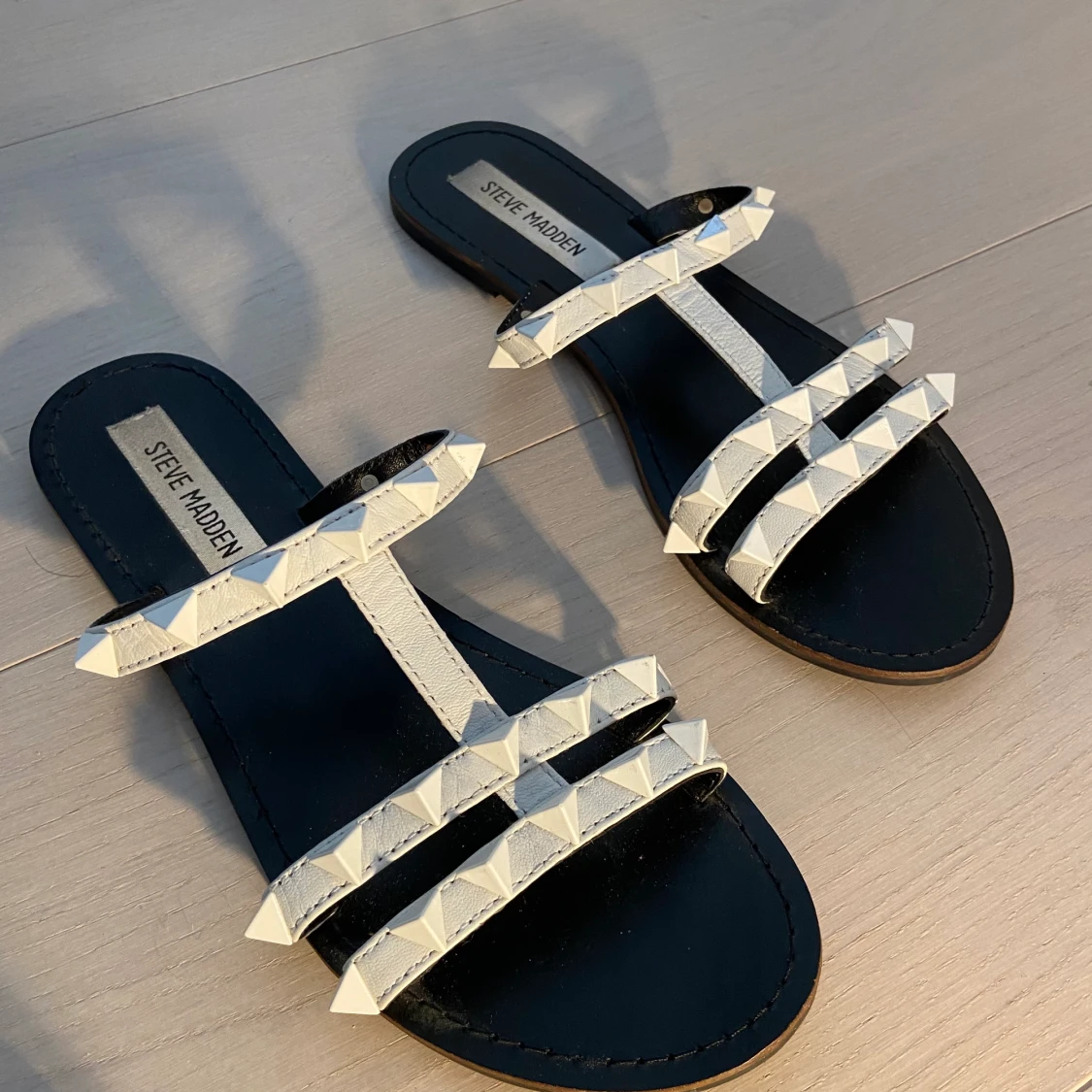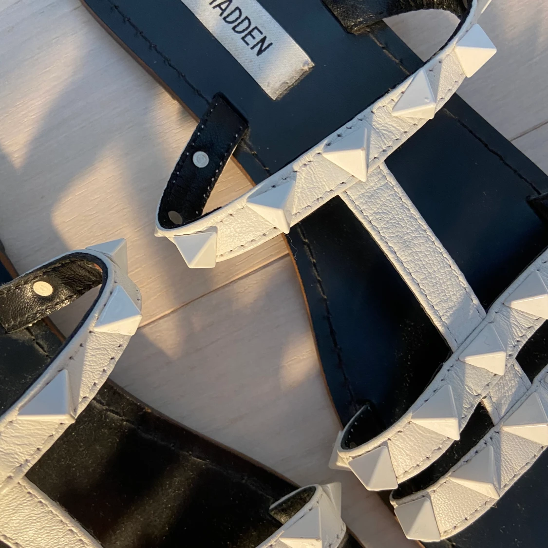 Vitq somriga sandaler med detaljer.