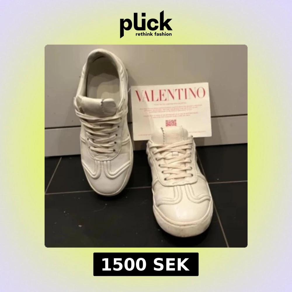 Säljer ett par vita sneakers från Valentino Garavani med rund tå och snörning. Skorna har en stilren design med diskreta sömmar och mönster på ovandelen. Perfekta för dig som gillar exklusiva och klassiska sneakers.