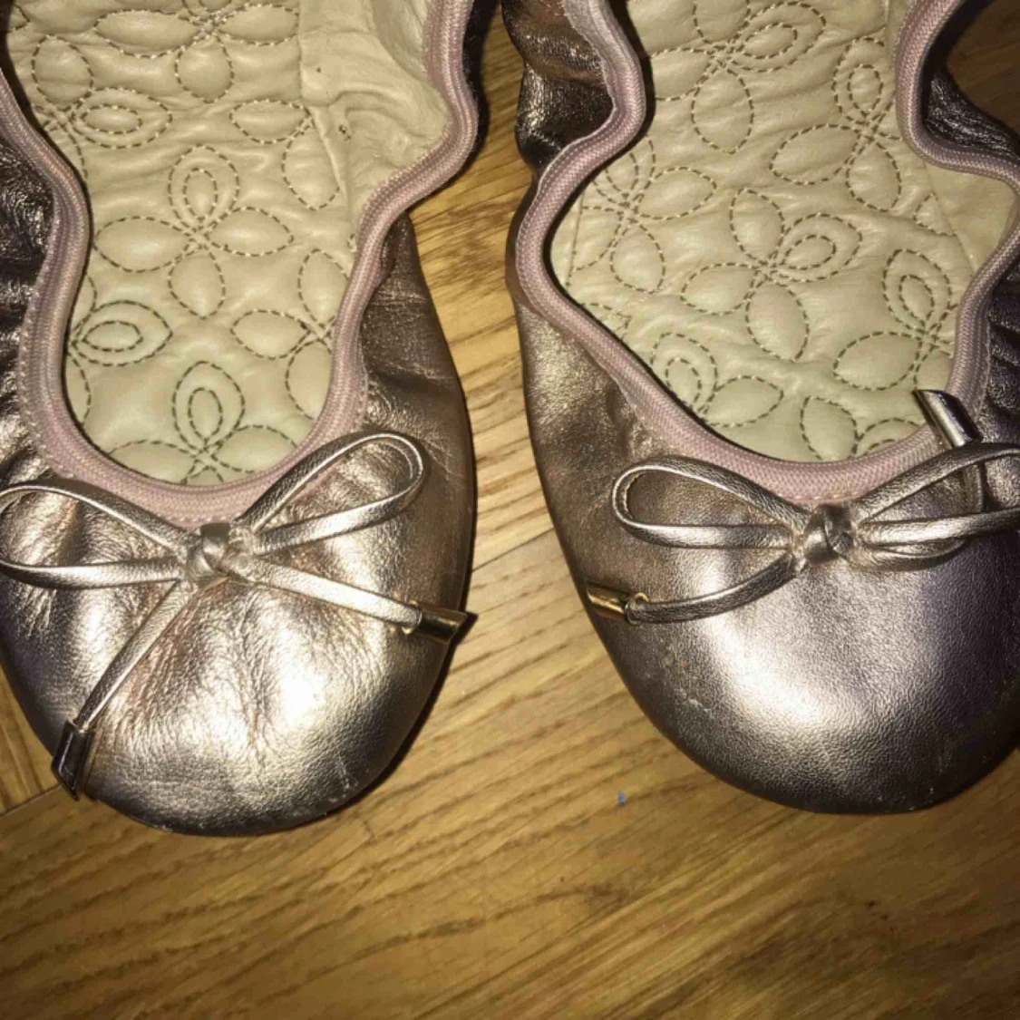 Rosé guldiga ballerina skor! Supersöta o i super bra skick. Dom går att vika ihop vilket är jätte praktiskt. Dom är små i storleken alltså mer som en 38a än en 39a💕 köpare står för frakt!