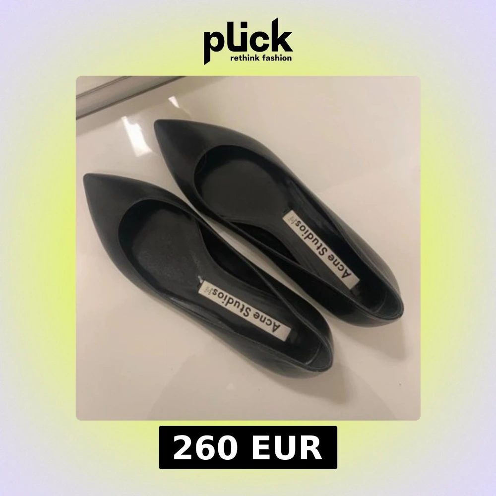 Stilrena svarta ballerinaskor från Acne Studios med spetsig tå. Skorna är tillverkade i skinn och har en elegant och minimalistisk design. Perfekta för sommaren🩷 Passar även 38