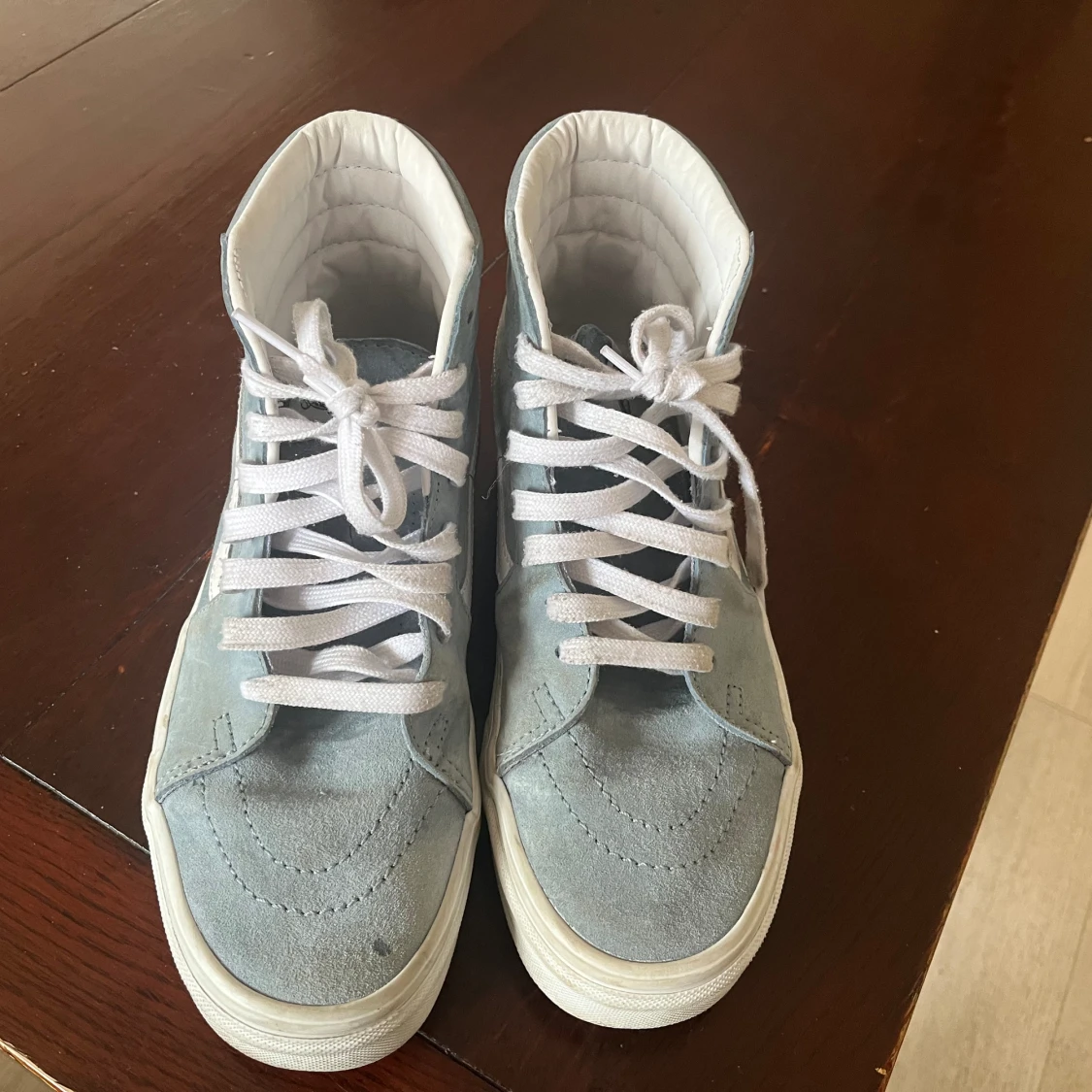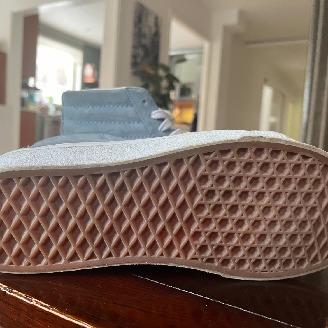 Så fina Vans skor i ljusblå, perfekt till vår och sommar! 🩵🩵 100% äkta kan skicka fler bilder ifall de behövs! Använda Max 4 gånger så i väldigt bra skick