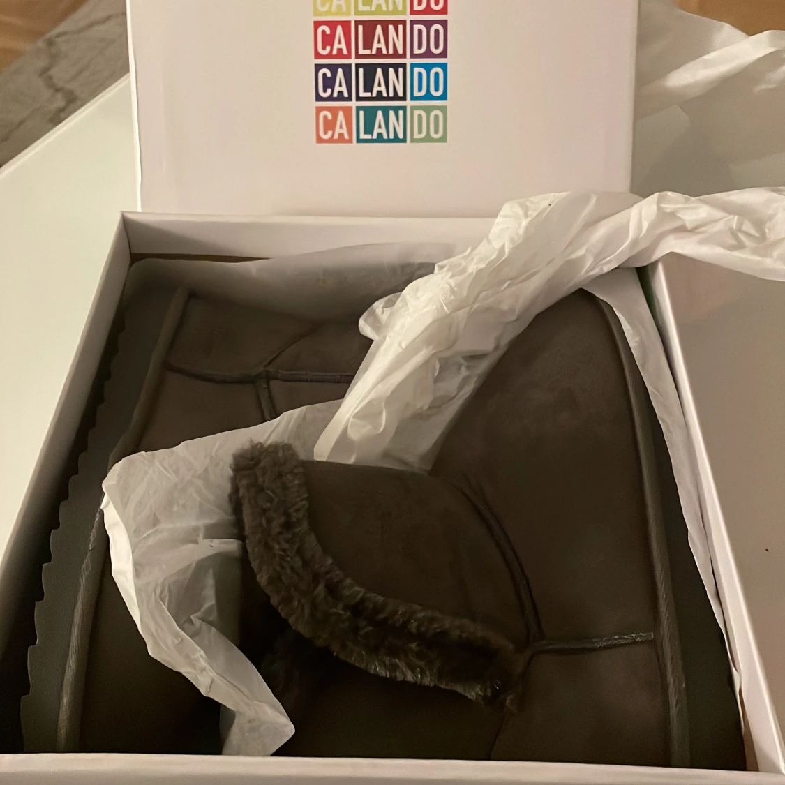 Höst/vinter stövletter från Zalando i märket calando. Aldrig använda eftersom de var små i storleken men hann aldrig retunera. Fortfarande i boxen. Stl 41 för att de är små i storleken. Passar alla med storlek 40, 39 och 38,5.