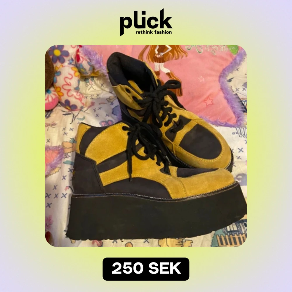 Så coola skor, äkta 90-tal. I fint begagnat skick! Är som mocka-känsla på yttre materialet. Står ingen storlek men är mellan 37-38 skulle jag tro. Insida sula mäter med skomätare 248 mm.