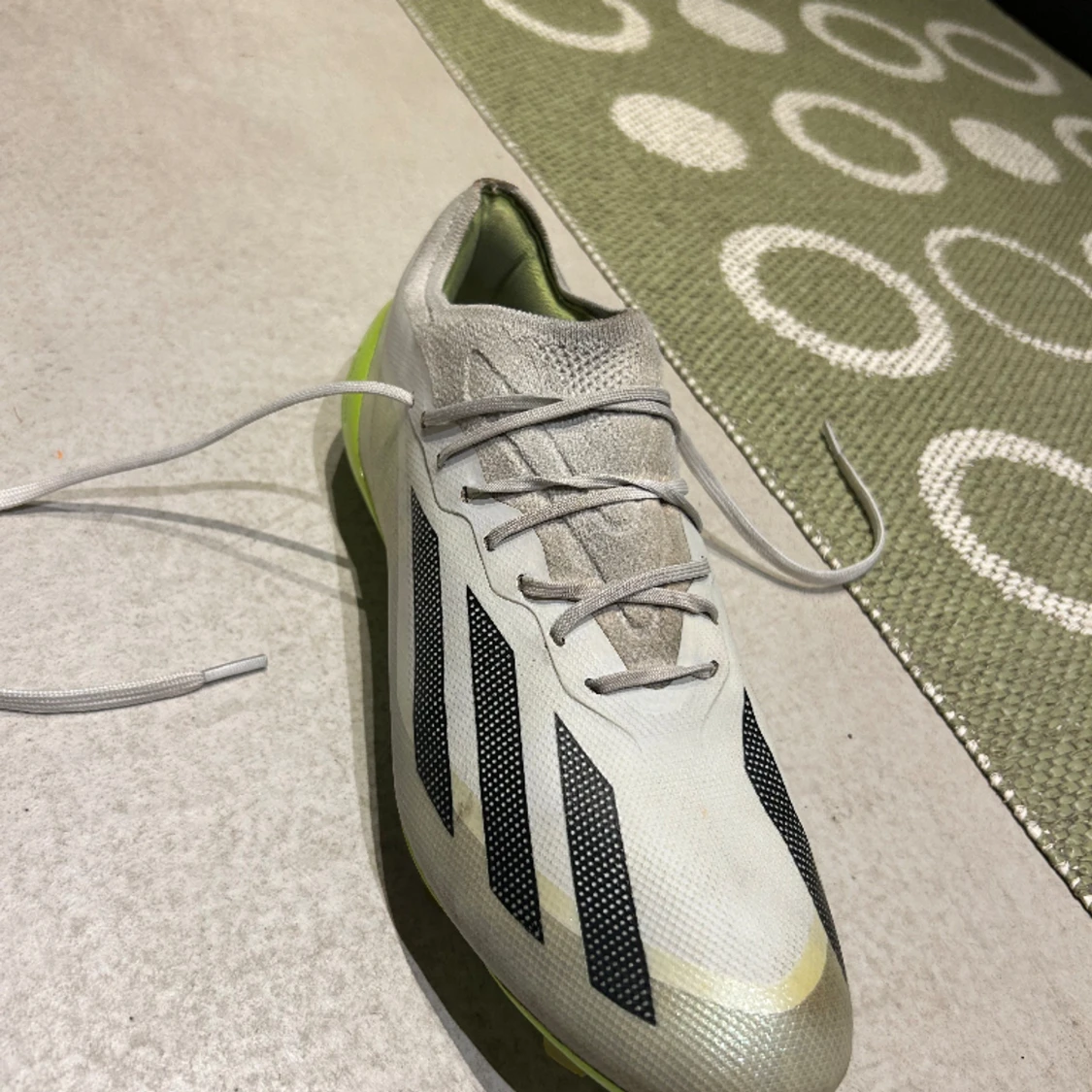 Använda cirka 3 månader. Bra skick ingen större defekter. Köpta för 2800 kr på Unisport. Skick 7/10 Storlek: 43 1/3
