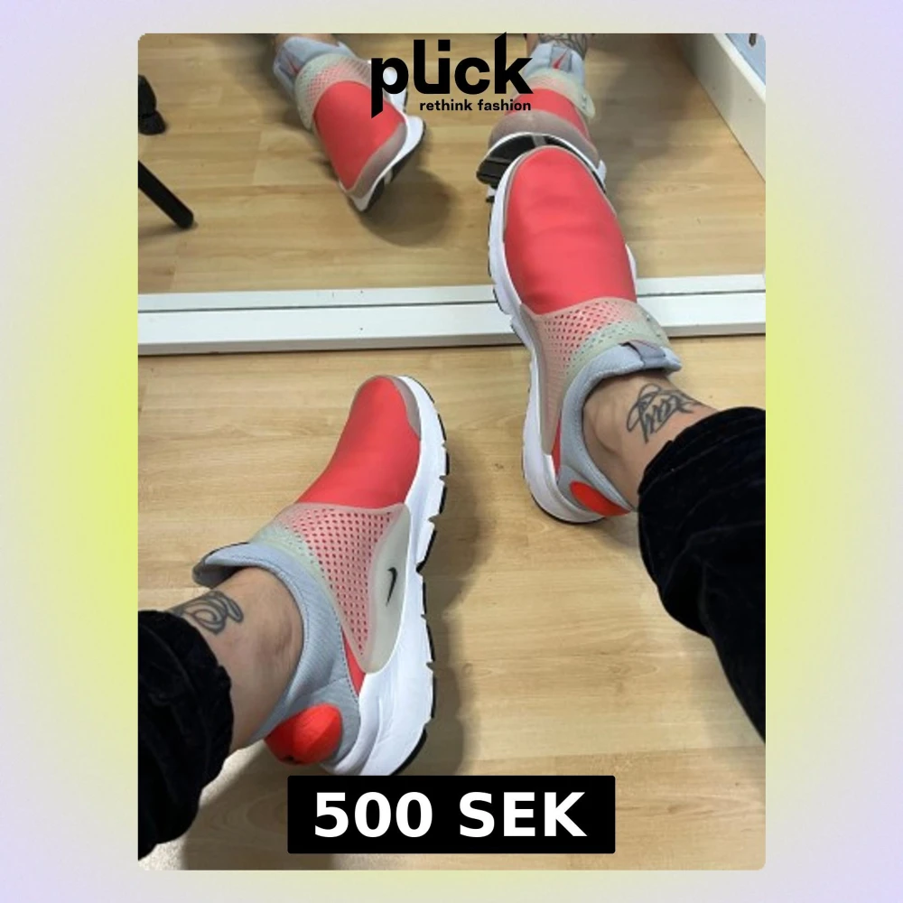 Nike Sock Dart sneakers i rött och grått med vit sula och svarta detaljer. Skorna har en slip-on design utan snörning, ventilerande meshpaneler på sidorna och en bekväm, flexibel passform. Perfekta för dig som gillar sportig och modern stil. Använda 1-2 gånger. EUR 40 / 25 cm. Köpta för 1500kr.