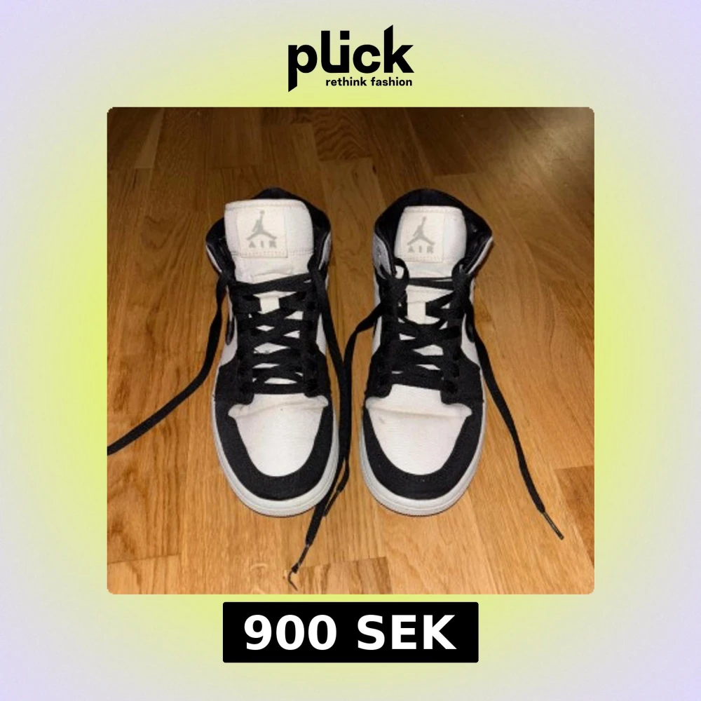 Nike Air Jordan 1 sneakers i svart och vit med klassisk high-top siluett. Materialet är en mix av syntet och textil och har inte försökt tvätta dom men fläckar går att ta bort. Användes några gånger och kommer inte längre till användning💕
