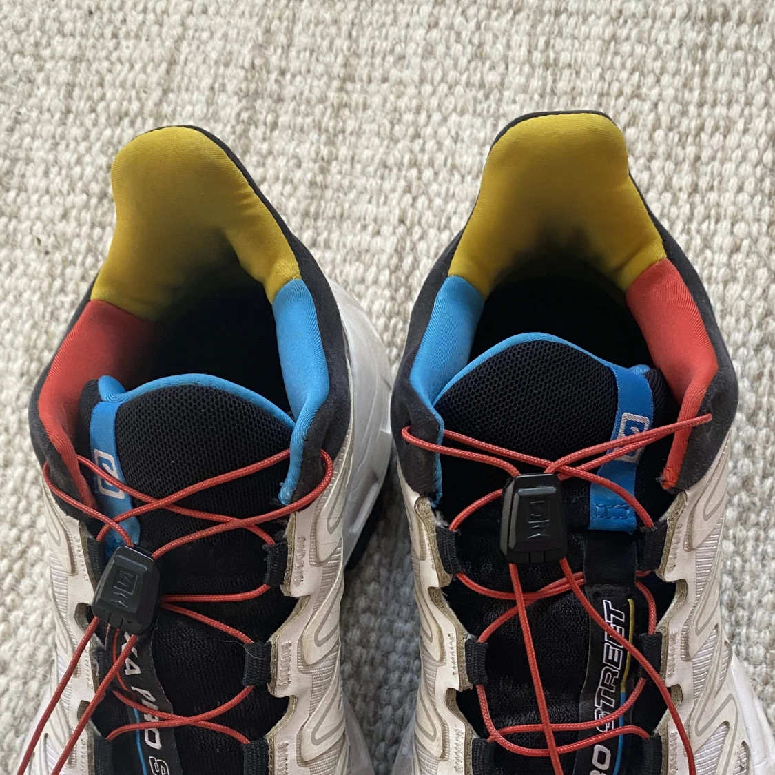 Snygga trendiga Salomon sneakers i storlek 38. Blivit lite smutsiga i färgen men annars i gott skick och inga övriga anmärkningar.
