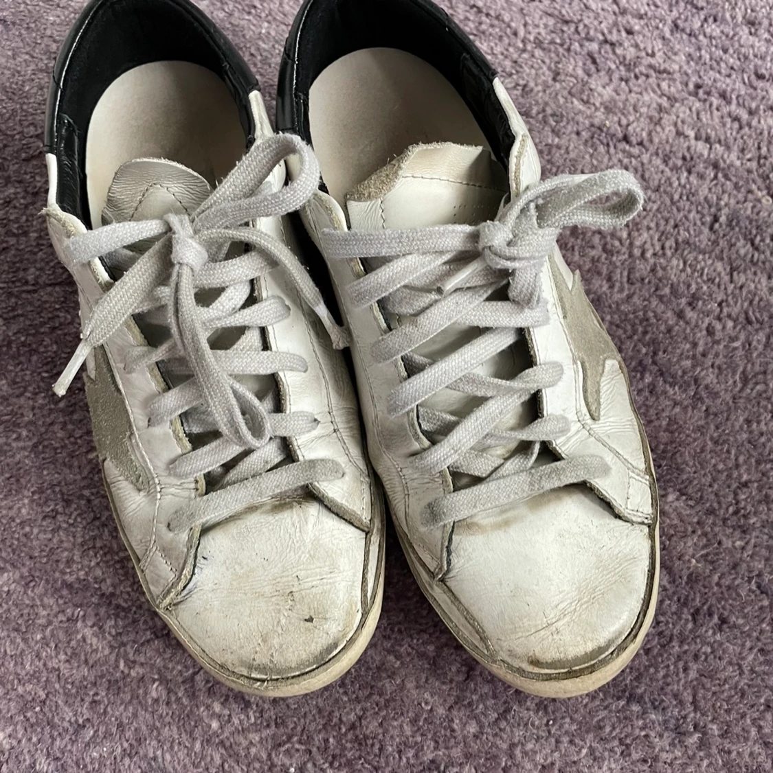 Mina älskade sneakers används knappt aldrig och är oerhört sparsamt använda! De behöver en ny ägare! 🥰 - Tidlös design från det italienska designmärket Golden Goose - Gjort i en ”smutsig design” av italienskt läder - Köpta för nypris för ca 1 år sedan från Wakakuu.se - Skokartong och specifikt sko-ID för skon finns samt skopåse Frågor? Fler bilder? Tveka inte att höra av dig!!🥰