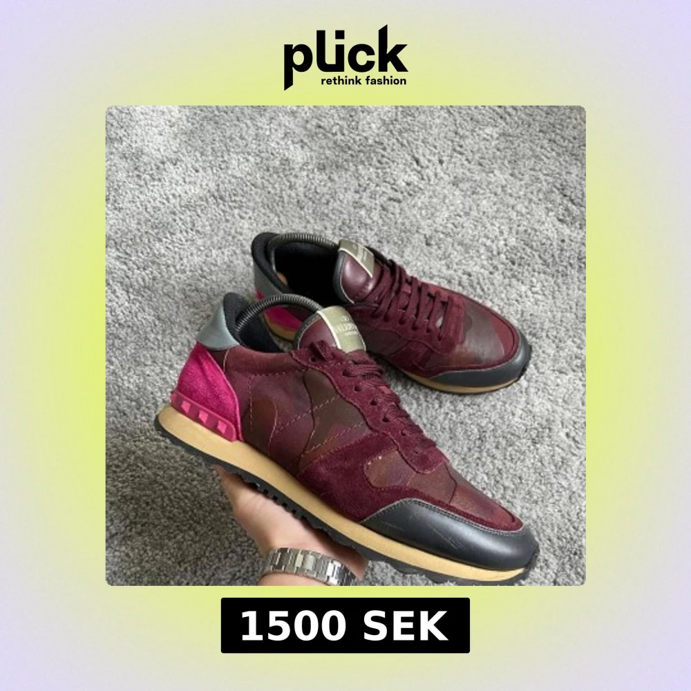Snygga Valentino Rockrunner sneakers i vinrött med svarta detaljer. Skorna har ett coolt kamouflagemönster och är tillverkade i en mix av skinn och mocka. De har en bekväm gummisula och klassisk snörning.Storlek 43 passar 44