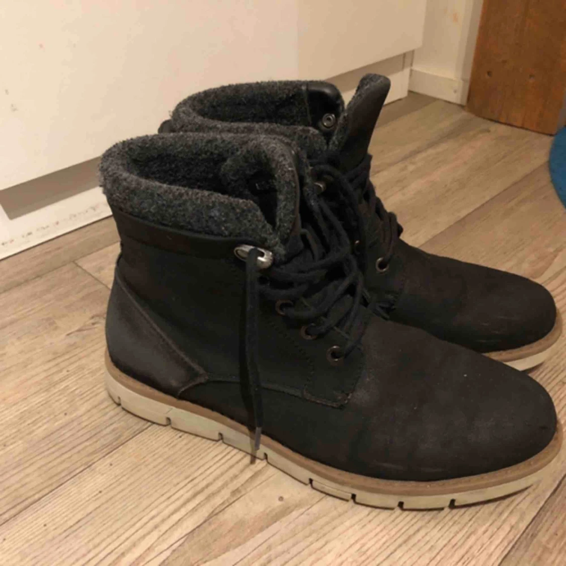 Herr vår/höstsko fodrade. Anv men hela å fina. Anv endast 2 månader. Svarta