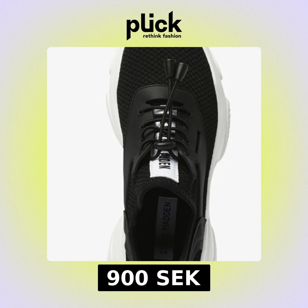 Svarta c sneakers från Steve Madden med vit sula. Skorna har snörning med elastiska snören och detaljer i syntet. Perfekta för en trendig streetstyle-look. Storlek 38 använda 1 gång köpta för 1200 kr