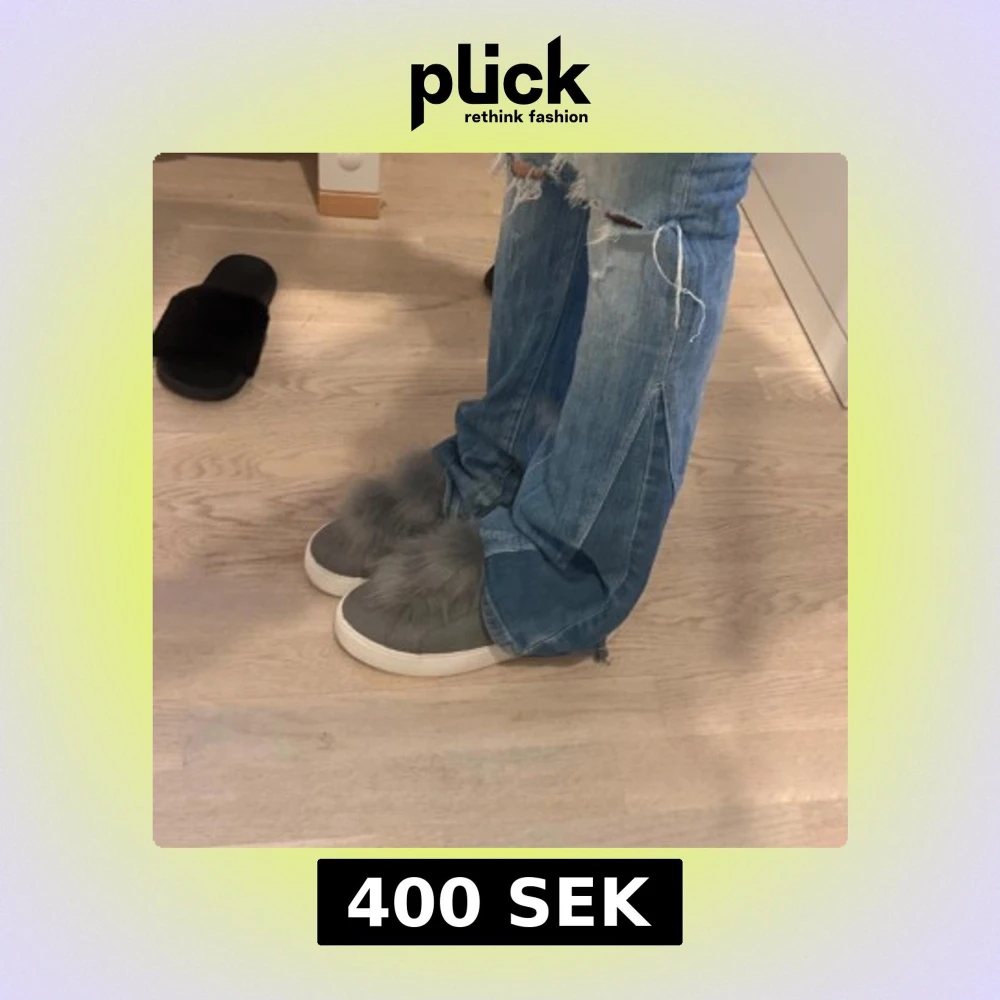 Grå sneakers från Steve Madden med vit platt sula och fluffig pälsdetalj på ovansidan. Skorna har rund tå och är tillverkade i mocka med inslag av syntet. Perfekt för dig som vill sticka ut med en unik och trendig look. Älskar skorna men dem är tyvärr för stora byter gärna mot en mindre storlek