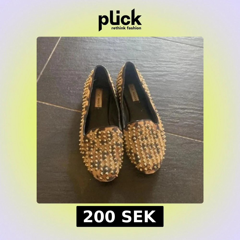 Steve Madden loafers i leopardmönstrad mocka med guldiga nitar över hela skon. Platt sula och rund tå, perfekt för dig som vill sticka ut. Skorna har en cool och edgy vibe med djurmönster och metallic-detaljer. Tryck ej köp nu
