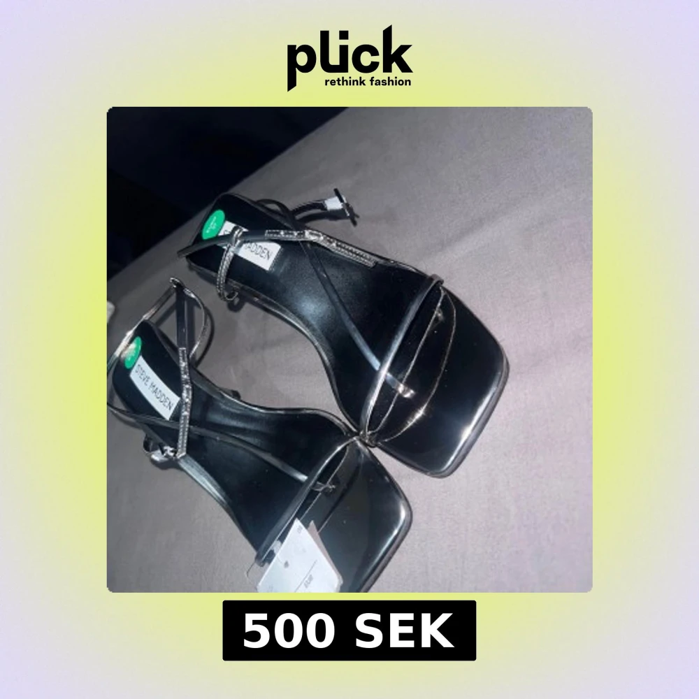 Fick dessa Steve Madden metallic black klackar (stl 37) som present – men de har tyvärr aldrig kommit till användning. Glansig spegelliknande finish på remmar och häl, trendig square toe och bekväm klack för både vardag och fest. Helt nya med prislapp kvar – redo för någon som faktiskt kommer använda dem!